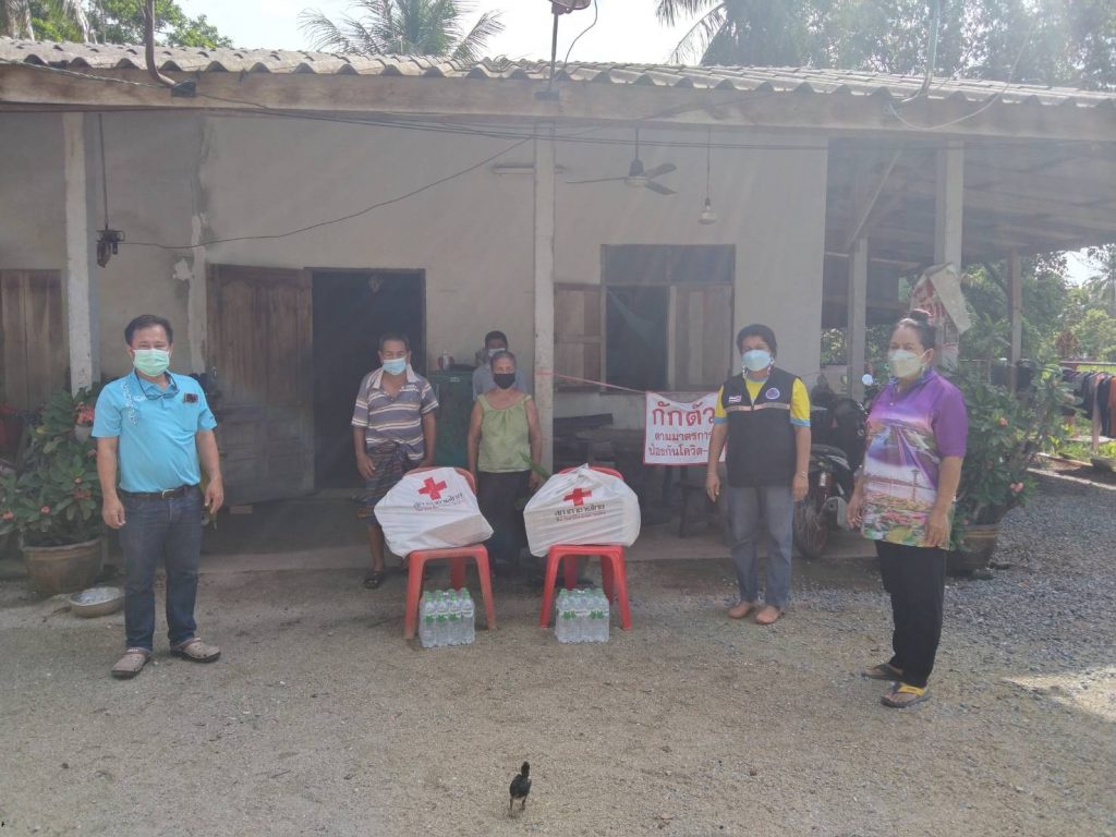 วันที่ 20 พฤศจิกายน 2564 นางมะลิ วงศ์กระพันธุ์ นายกเหล่ากาชาดจังหวัดพัทลุง มอบหมายให้นายชลิต เกษรสวัสดิ์ นวก.สาธารณสุขชำนาญการ พร้อมด้วย อสม. เจ้าหน้าที่ รพ.สต.บ้านโตระและผู้นำชุมชนเยี่ยมให้กำลังใจและมอบถุงยังชีพชุดธารน้ำใจ กู้ชีวิตฝ่าวิกฤติ COVID – 19 แก่กลุ่มเสี่ยงที่กักกันโรคโควิด -19 ณ พื้นที่หมู่ที่ 3 ตำบลตำนาน อำเภอเมืองพัทลุง จังหวัดพัทลุง จำนวน 3 ครัวเรือน เพื่อป้องกันการแพร่เชื้อโรคโควิด -19
