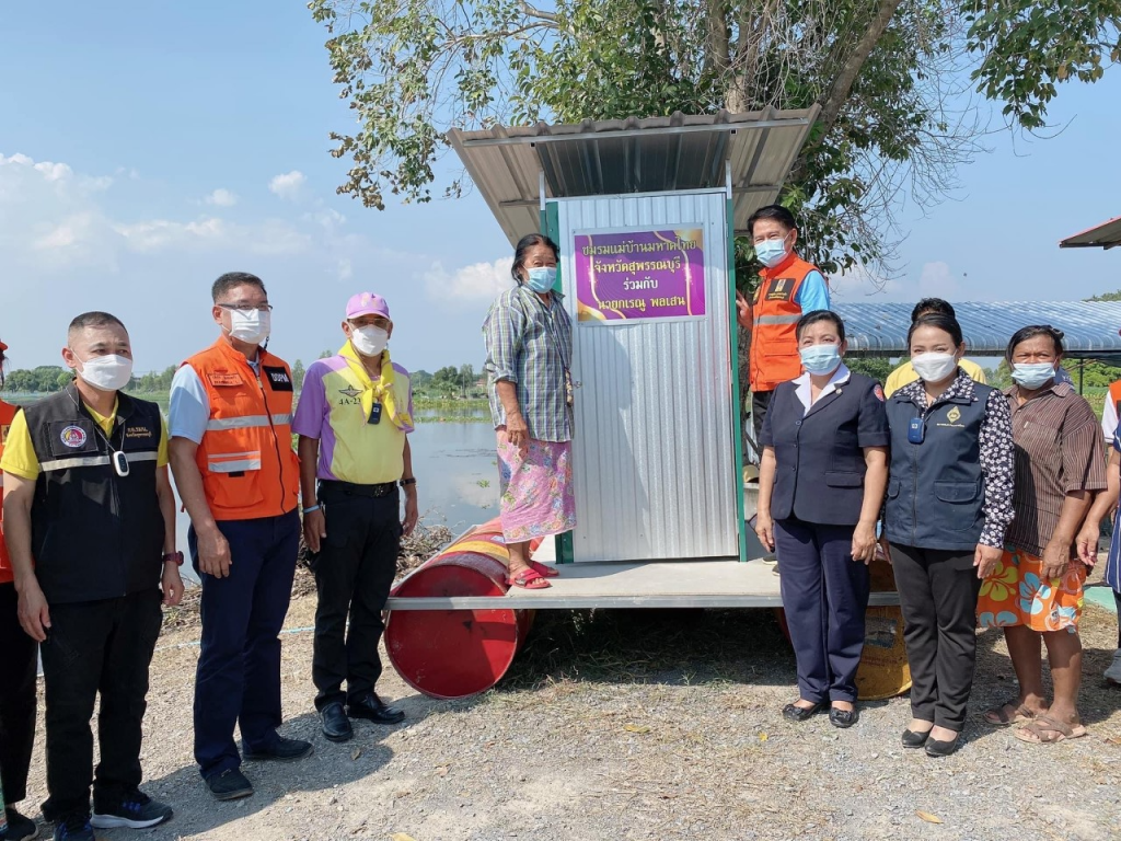 วันที่ 21 พฤศจิกายน 2564 นางนภัสสร สุวรรณประทีป นายกเหล่ากาชาดจังหวัดสุพรรณบุรี พร้อมด้วยกรรมการเหล่ากาชาดจังหวัด ร่วมมอบสุขาลอยน้ำช่วยเหลือผู้ประสบอุทกภัย โดยมี นายณัฐภัทร สุวรรณประทีป ผู้ว่าราชการจังหวัดสุพรรณบุรี เป็นประธาน ณ บ้านทองเอิบ ม.2 ต.กฤษณา อ.บางปลาม้า จ.สุพรรณบุรี
