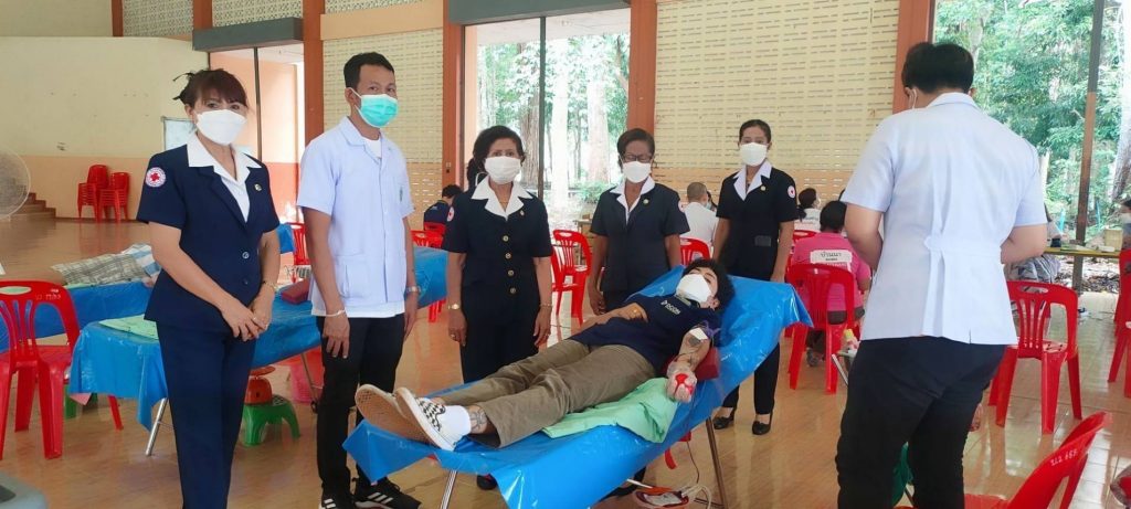 วันที่ 22 พฤศจิกายน พ.ศ. 2564นางอุรสา จินโต นายกเหล่ากาชาดจังหวัดสุราษฎร์ธานี มอบหมายให้ที่ปรึกษา/กรรมการ/สมาชิกเหล่ากาชาดจังหวัดสุราษฎร์ธานีและ ธนาคารเลือด โรงพยาบาลสุราษฎร์ธานีร่วมกับ อำเภอบ้านนาเดิม และสาธารณสุขอำเภอบ้านนาเดิม จัดกิจกรรมรับบริจาคโลหิต ดวงตา และอวัยวะ”มั่นใจ ปลอดภัย บริจาคโลหิต ฝ่าวิกฤต COVID-19 ไปด้วยกัน”เพื่อเป็นการจัดหาโลหิตสำหรับใช้ในการรักษาผู้ป่วยของโรงพยาบาลในจังหวัดสุราษฎร์ธานี ทั้ง 19 อำเภอ