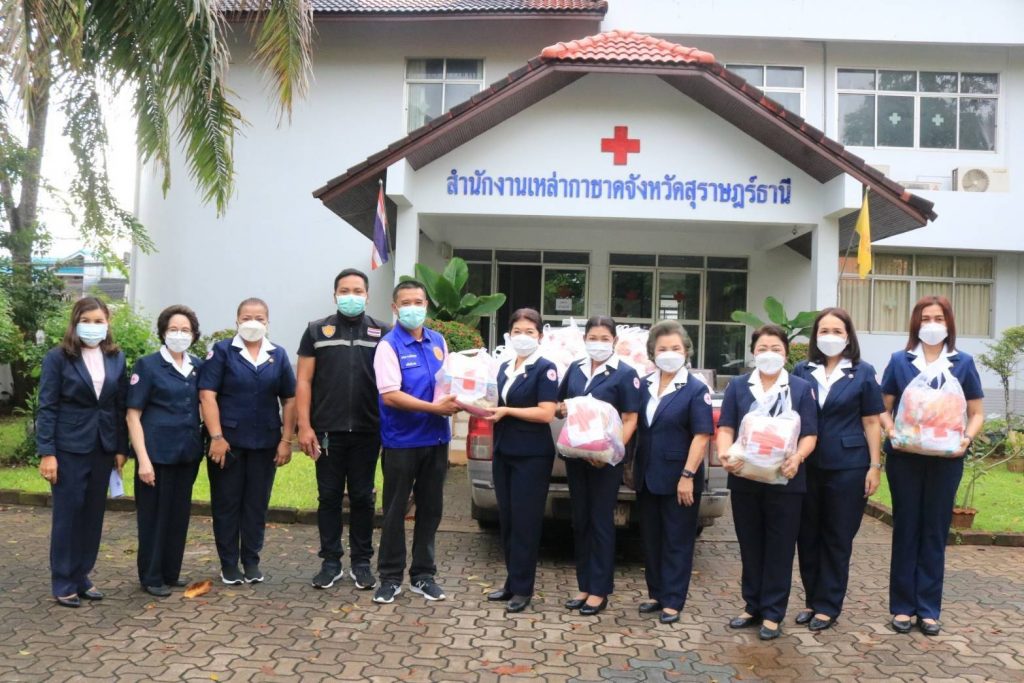 วันที่ 23 พฤศจิกายน 2564 นางอุรสา จินโต นายกเหล่ากาชาดจังหวัดสุราษฎร์ธานี พร้อมด้วยรองนายกเหล่ากาชาดจังหวัดสุราษฎร์ธานีกรรมการฯ ที่ปรึกษาฯ และสมาชิกเหล่ากาชาดจังหวัดสุราษฎร์ธานีได้มอบถุงยังชีพให้กับอำเภอชัยบุรี จำนวน 147 ถุง เพื่อให้นำไปช่วยเหลือประชาชนที่ได้รับผลกระทบจากเหตุการณ์น้ำป่าไหลหลาก เมื่อวันที่ 20 พฤศจิกายน 2564 ในพื้นที่อำเภอชัยบุรี จังหวัดสุราษฎร์ธานี ในการนี้ นายสุกิจ มีพริ้ง นายอำเภอชัยบุรีได้มอบหมายให้ ว่าที่ ร.อ.ธเนศ ชาคริตสกุล ปลัดอำเภอชัยบุรีเป็นตัวแทนในการรับมอบฯ ณ สำนักงานเหล่ากาชาดจังหวัดสุราษฎร์ธานี เพื่อจะได้นำไปแจกจ่ายในพื้นที่ตำบลต่างๆ ของอำเภอชัยบุรี ต่อไป