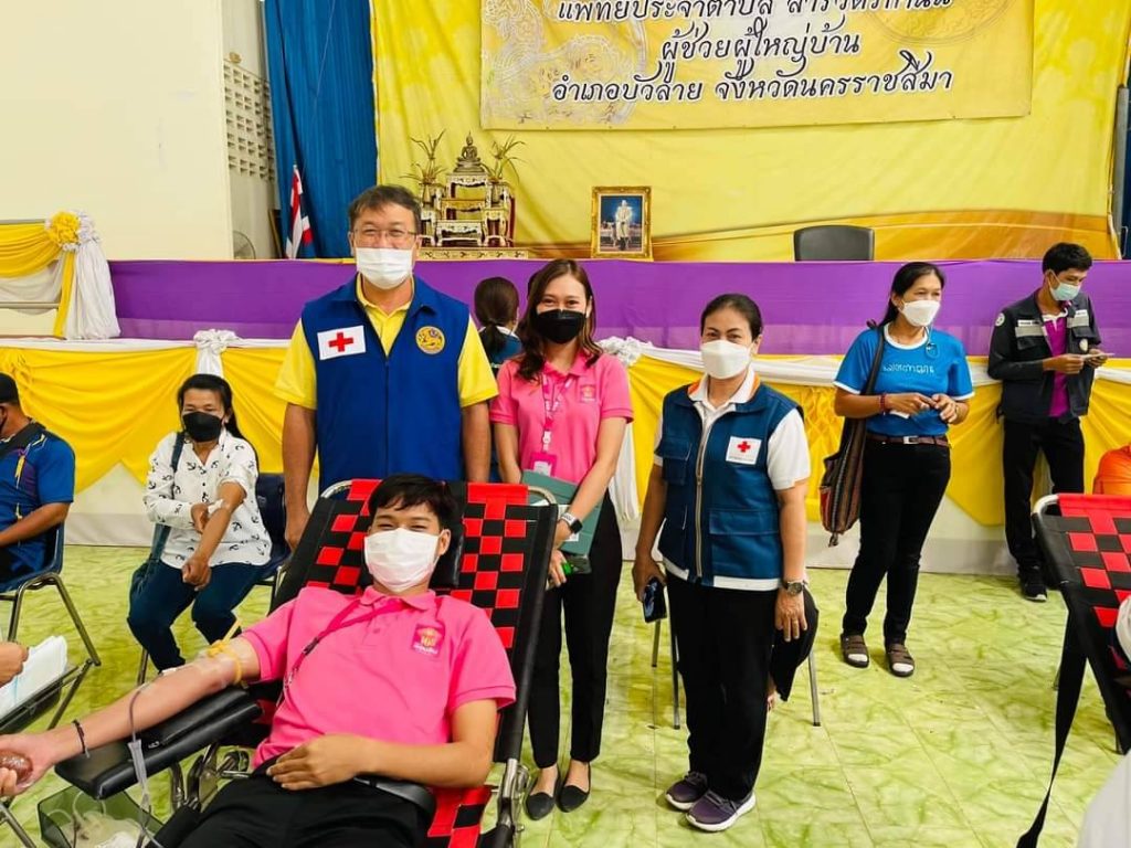 วันที่ 24 พฤศจิกายน 2564 นางณัฏฐินีภรณ์ จันทรโณทัย นายกเหล่ากาชาดจังหวัดนครราชสีมา มอบหมายให้เจ้าหน้าที่ สาขาบริการโลหิตแห่งชาติ เหล่ากาชาดจังหวัดนครราชสีมา ร่วมกับโรงพยาบาลมหาราชนครราชสีมาออกรับบริจาคโลหิต เพื่อเป็นการจัดหาโลหิตสำหรับใช้ในการรักษาผู้ป่วย ของโรงพยาบาลในจังหวัดนครราชสีมา ออกหน่วยรับบริจาคโลหิต ณ อำเภอบัวลายมีผู้ประสงค์บริจาคโลหิตทั้งสิ้น 113 รายจำนวนโลหิตที่ไดัรับบริจาค 82 ยูนิต