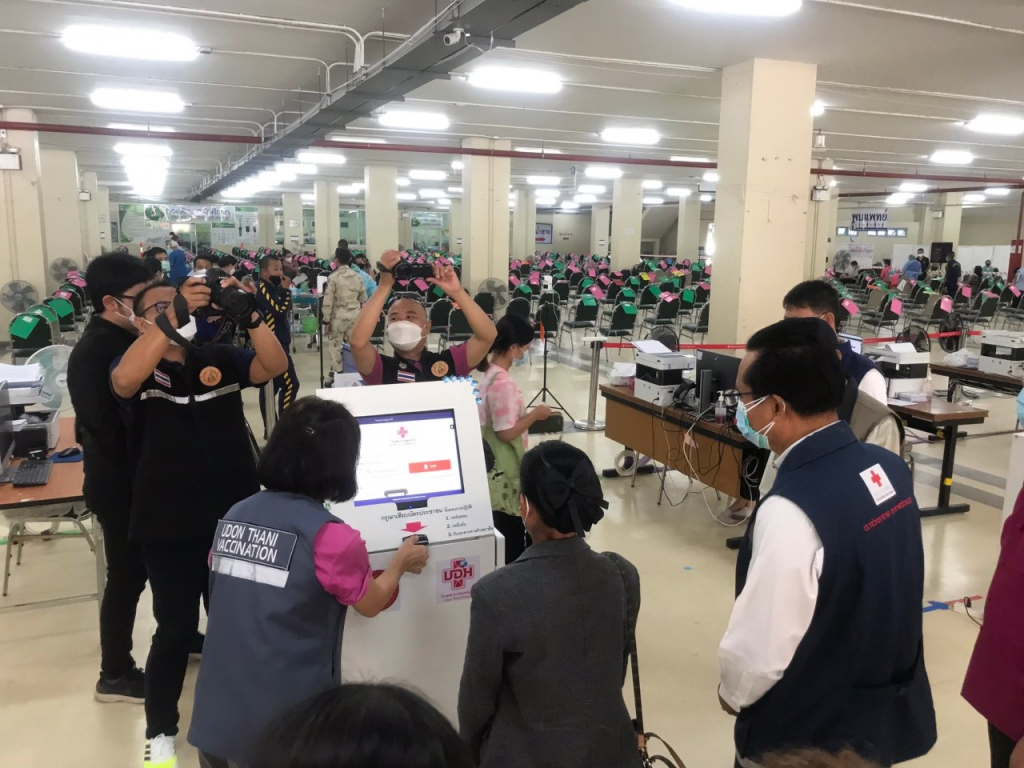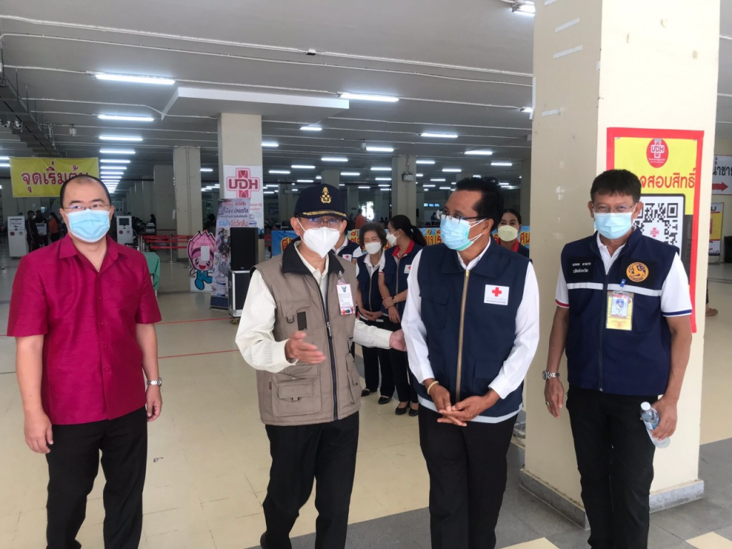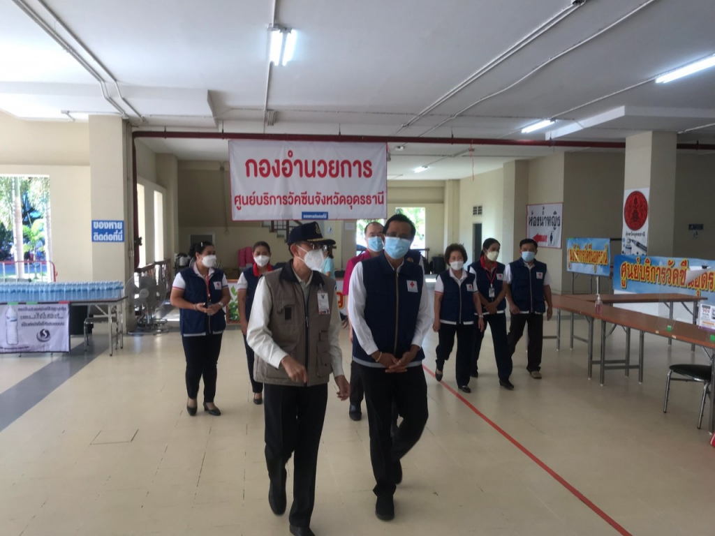 วันที่ 23 พฤศจิกายน 2564 นายสยาม ศิริมงคล นายกเหล่ากาชาดจังหวัดอุดรธานี ผู้ว่าราชการจังหวัดอุดรธานี มอบหมายให้นายกองเอก ปราโมทย์ ธัญญพืช รองผู้ว่าราชการจังหวัดอุดรธานี/รองนายกเหล่ากาชาดจังหวัดอุดรธานี พร้อมด้วยนางจริญญา กังน้อย รองนายกเหล่ากาชาดจังหวัดอุดรธานี นายนพดล มามาก ปลัดจังหวัดอุดรธานี /เลขานุการเหล่ากาชาดจังหวัดอุดรธานี และคณะกรรมการเหล่ากาชาด สมาชิกเหล่ากาชาดร่วมต้อนรับ นายสุวิทย์ คำดี ที่ปรึกษาเฉพาะคราวของสำนักงานบริหารกิจการเหล่ากาชาด สภากาชาดไทย ลงพื้นที่เพื่อตรวจเยี่ยมและให้กำลังใจบุคลากรทางการแพทย์ เจ้าหน้าที่และประชาชนกลุ่มเป้าหมาย เช่น กลุ่มผู้พิการ/หญิงตั้งครรภ์ บุคลากรทางการแพทย์ และกลุ่มผู้สูงอายุ 70 ปีขึ้นไป ในการฉีดวัคซีนป้องกันโรคโควิด -19 Moderna สภากาชาดไทย ในรอบแรก โดยนายวิเชียร ขาวขำ นายกองค์การบริหารส่วนจังหวัดได้มอบหมายให้นายศักดิ์ดา เกตุแก้ว รองนายกองค์การบริหารส่วนจังหวัดอุดรธานี เจ้าหน้าที่ ที่เกี่ยวข้อง ร่วมกิจกรรม ณ หอประชุมอเนกประสงค์ มหาวิทยาลัยราชภัฏอุดรธานี อำเภอเมืองอุดรธานี จังหวัดอุดรธานี