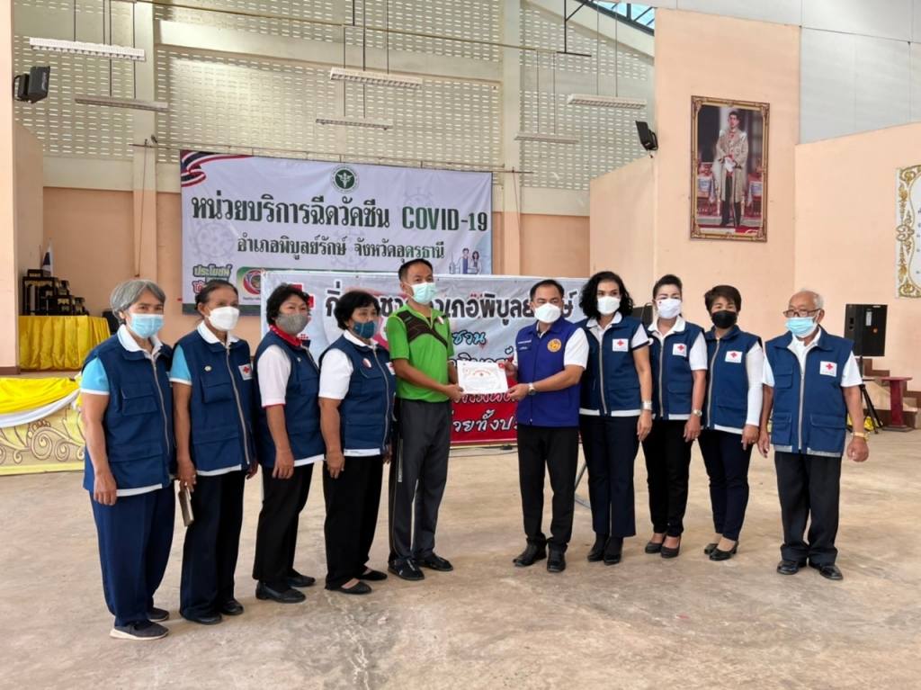 วันที่ 24 พฤศจิกายน 2564 นายสยาม ศิริมงคล นายกเหล่ากาชาด ผู้ว่าราชการจังหวัดอุดรธานี มอบหมายให้คณะกรรมการ และเจ้าหน้าที่เหล่ากาชาดจังหวัดอุดรธานี ออกหน่วยรับบริจาคโลหิตเคลื่อนที่ ร่วมกับโรงพยาบาลจังหวัดอุดรธานี – การนี้ นายเสกสรรค์ จูมพลหล้า นายอำเภอพิบูลย์รักษ์ นางอารีย์รัตน์ จูมพลหล้า นายกกิ่งกาชาดอำเภอพิบูลย์รักษ์ ให้การต้อนรับและร่วมกิจกรรม พร้อมด้วย สมาชิกกิ่งกาชาดฯ ข้าราชการ เจ้าหน้าที่ ลูกจ้าง ผู้นำชุมชน องค์กรปกครองส่วนท้องถิ่น สาธารณสุขอำเภอ พระภิกษุสงฆ์อาจารย์ นักเรียน และประชาชนทั่วไป