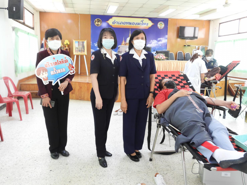 วันที่ 25 พฤศจิกายน 2564 นาวาเอกหญิงอินทิรา ตันเจริญ นายกเหล่ากาชาดจังหวัดชัยนาท พร้อมด้วยคณะกรรมการและสมาชิกเหล่ากาชาด นางสาวลัดดา ชื่นชูใจ นายอำเภอหนองมะโมง สมาชิกแม่บ้านมหาดไทยจังหวัดชัยนาท ร่วมกับภาคบริการโลหิตที่ 8 นครสวรรค์ ออกหน่วยเคลื่อนที่รับบริจาคโลหิต ณ ที่ว่าการอำเภอหนองมะโมง มีผู้บริจาคโลหิต 55 ราย ได้จำนวนโลหิต 24,750 ซีซี มีผู้บริจาคดวงตา 2 ราย มีผู้บริจาคร่างกาย 1 ราย/เหล่ากาชาดจังหวัดชัยนาท