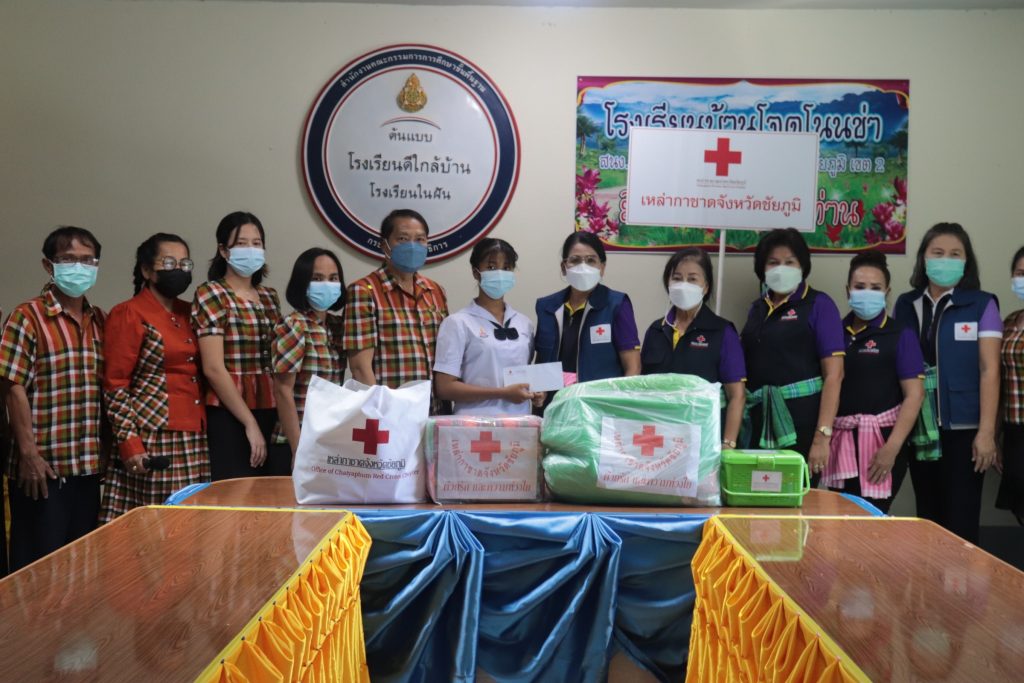 วันที่ 25 พฤศจิกายน 2546 นางกรรณิกา กองฉลาด นายกเหล่ากาชาดจังหวัดชัยภูมิ พร้อมด้วยกรรมการเหล่ากาชาดจังหวัดชัยภูมิ เยี่ยมและให้กำลังใจนักเรียนทุนการศึกษาร่วมจิตน้อมเกล้าฯ ด.ญ.ณัฐภัทร วงษา ณ โรงเรียนบ้านโจดโนนข่า อำเภอบ้านแท่น จังหวัดชัยภูมิ