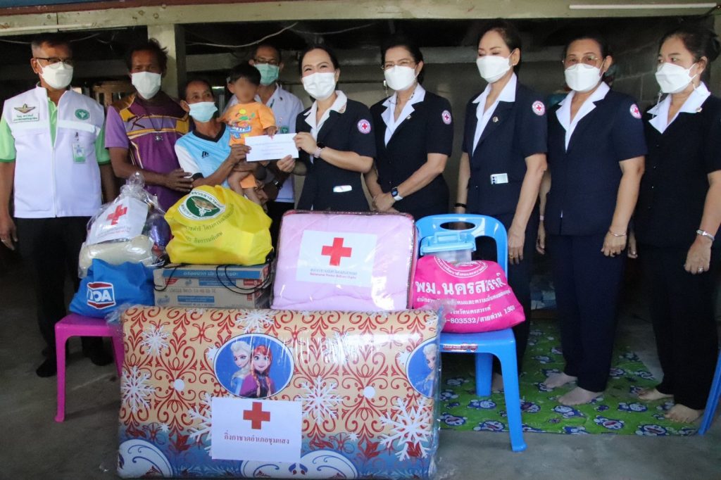 โดยเหล่ากาชาดจังหวัดนครสวรรค์มอบเงินให้รายละ 1,500 บาท เครื่องอุปโภค บริโภค พร้อมผ้าห่ม รายละ 1 ชุด และผลิตภัณฑ์นมยูเอชที รายละ 3 ลัง ในการนี้ กิ่งกาชาดอำเภอชุมแสง สำนักงานสาธารณสุขจังหวัดนครสวรรค์และพัฒนาสังคมและความมั่นคงของมนุษย์จังหวัดนครสวรรค์ ได้ร่วมมอบสิ่งของให้กับผู้ป่วยฯ เพื่อเป็นกำลังใจในการดำเนินชีวิต