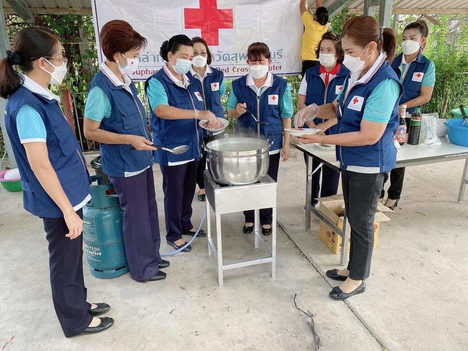 วันที่ 24 พฤศจิกายน 2564 นางนภัสสร สุวรรณประทีป นายกเหล่ากาชาดจังหวัดสุพรรณบุรี นางณัฐนันท์ ทองคำ นางฐิติพร ศิริโกศล นางรัตนาภรณ์ ยั่งยืน รองนายกเหล่ากาชาดจังหวัด พร้อมด้วยที่ปรึกษา กรรมการและสมาชิกเหล่ากาชาดจังหวัด จัดตั้งโรงครัวประกอบอาหาร โดยได้ทำไก่กระเทียม ต้มฟักหมูสับ ไข่ต้ม เพื่อนำไปเลี้ยงผู้สูงอายุตามโครงการกาชาดห่วงใยผู้สูงวัยศูนย์ส่งเสริมคุณภาพชีวิตผู้สูงอายุจังหวัดสุพรรณบุรี ณ ศูนย์ส่งเสริมคุณภาพชีวิตผู้สูงอายุจังหวัดสุพรรณบุรี อ.บางปลาม้า จ.สุพรรณบุรี