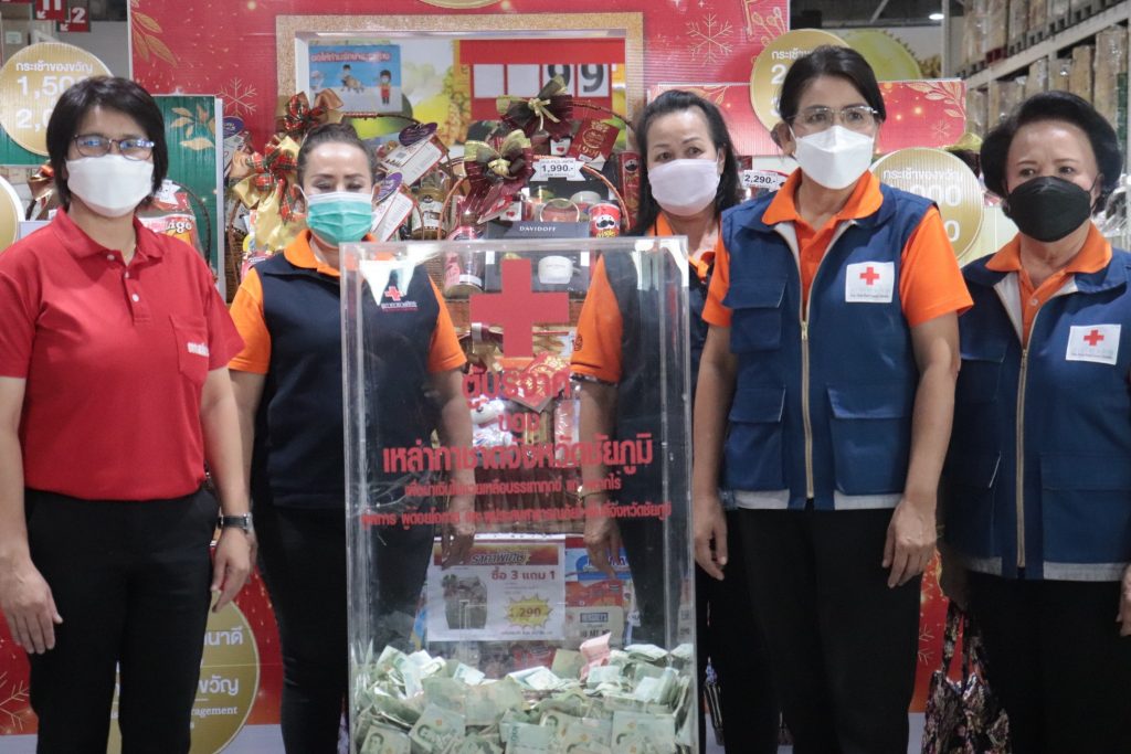 วันที่ 2 ธันวาคม 2564 นางกรรณิกา กองฉลาด นายกเหล่ากาชาดจังหวัดชัยภูมิ พร้อมด้วยคณะกรรมการเหล่ากาชาดจังหวัดชัยภูมิ ที่ปรึกษาคณะกรรมการเหล่ากาชาดจังหวัดชัยภูมิ และเหรัญญิกเหล่ากาชาดจังหวัดชัยภูมิ เปิดตู้รับบริจาคของเหล่ากาชาดจังหวัดชัยภูมิ ที่ติดตั้ง ณ บริษัท สยามแม็คโคร จำกัด (มหาชน) สาขาชัยภูมิ เพื่อนำเงินไปใช้ในกิจกรรมสาธารณกุศลต่างๆ ทั้งนี้ มีประชาชนได้ร่วมบริจาคเป็นเงินทั้งสิ้น 116,800 บาท