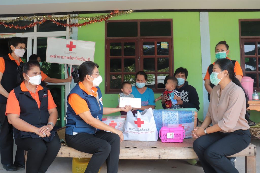 วันที่ 2 ธันวาคม 2564 นางกรรณิกา กองฉลาด นายกเหล่ากาชาดจังหวัดชัยภูมิ พร้อมด้วยนางสมปรารถนา ชัยวิรัตนะ รองนายกเหล่ากาชาดจังหวัดชัยภูมิ และกรรมการเหล่ากาชาดจังหวัดชัยภูมิ ออกเยี่ยมราษฎรในพื้นที่อำเภอบำเหน็จณรงค์รายนางเต่า ยุทธอาจ อายุ 53 ปี อยู่บ้านเลขที่ 7/1 หมู่ที่ 10 ตำบลหัวทะเล อำเภอบำเหน็จณรงค์จังหวัดชัยภูมิ ขอความช่วยเหลือค่าใช้จ่ายในการเลี้ยงดูบุตรหลานฝาแฝดอายุ 1 ขวบ จำนวน 2 คน เนื่องจากมารดาเสียชีวิต และบิดาเกิดประสบอุบัติเหตุไม่สามารถประกอบอาชีพได้ ทั้งนี้ เหล่ากาชาดจังหวัดชัยภูมิ ได้มอบเงินสงเคราะห์ พร้อมถุงยังชีพ และสิ่งของเครื่องใช้ เพื่อบรรเทาความเดือดร้อนในเบื้องต้น