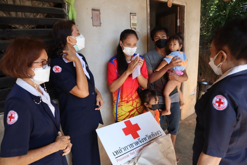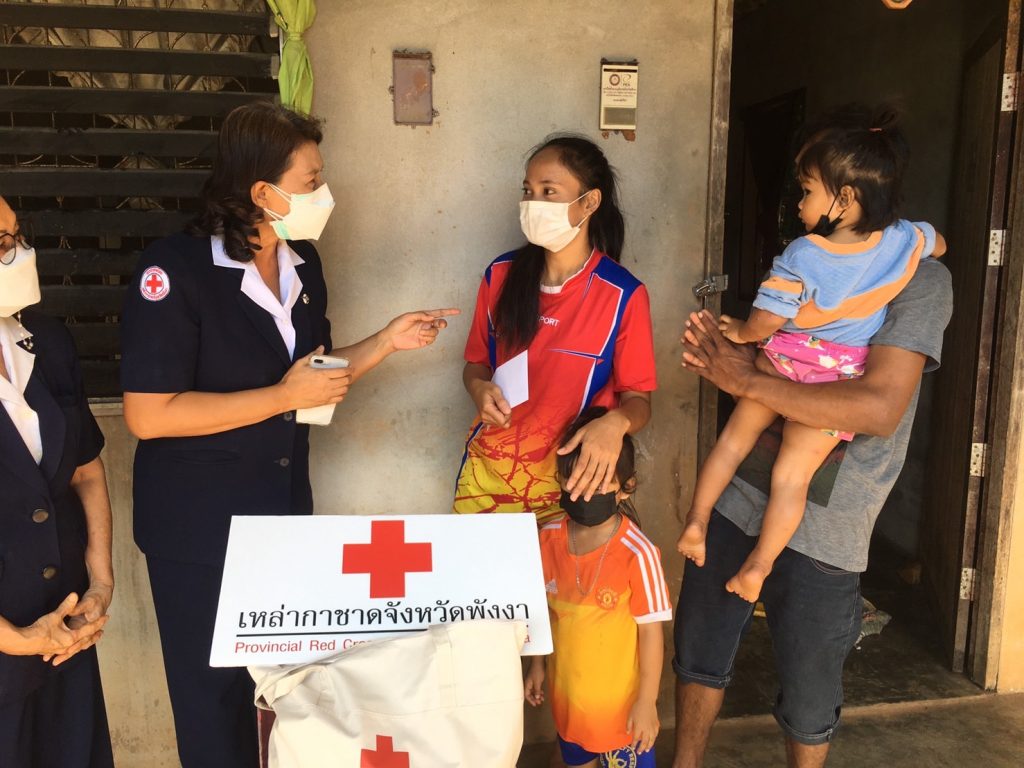 วันที่ 8 ธันวาคม 2564 นางวิภาดา ทิพญพงศ์ธาดา นายกเหล่ากาชาดจังหวัดพังงา มอบหมายให้นางนนทลี อบสุวรรณ กรรมการเหล่ากาชาดจังหวัดพังงา พร้อมสมาชิกเหล่ากาชาดจังหวัดพังงา เจ้าหน้าที่พัฒนาสังคมและความมั่นคงของมนุษย์จังหวัดพังงาเจ้าหน้าที่องค์การบริหารส่วนตำบลถ้ำน้ำผุดอสม.ร่วมลงพื้นที่ช่วยเหลือนางสาวเข็มอักษร หมั่นกุล อายุ 23 ปี อาศัยอยู่บ้านเลขที่ 4/2 หมู่ที่ 2 ตำบลถ้ำน้ำผุด อำเภอเมืองพังงา จังหวัดพังงา ตกงานทำให้ไม่มีรายได้มาเลี้ยงครอบครัว มีภาระต้องดูแลบุตร 3 คน ปับจุบันค้างชำระน้ำประปาประมาณ 4 เดือน ทำให้มีความลำบากให้การดำรงชีวิต เหล่ากาชาดจังหวัดพังงา มอบเงินช่วยเหลือ 2,000 บาท (สองพันบาทถ้วน) พร้อมถุงยังชีพ 1 ชุด เพื่อเป็นการช่วยเหลือเบื้องต้น