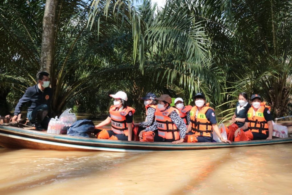 วันที่ 4 ธันวาคม 2564 นางอุรสา จินโต นายกเหล่ากาชาดจังหวัดสุราษฎร์ธานี ประธานแม่บ้านมหาดไทยจังหวัดสุราษฎร์ธานีพร้อมด้วย รองนายกเหล่ากาชาดจังหวัดสุราษฎร์ธานีรองประธานแม่บ้านมหาดไทยจังหวัดสุราษฎร์ธานีกรรมการฯ ที่ปรึกษาฯ สมาชิกเหล่ากาชาดจังหวัดสุราษฎร์ธานีและ สมาชิกชมรมแม่บ้านมหาดไทยจังหวัดสุราษฎร์ธานีลงพื้นที่อำเภอท่าฉาง เพื่อมอบถุงยังชีพและน้ำดื่ม ให้กับผู้ประสบอุทกภัยเพื่อเป็นขวัญกำลังใจและบรรเทาทุกข์ในเบื้องต้น