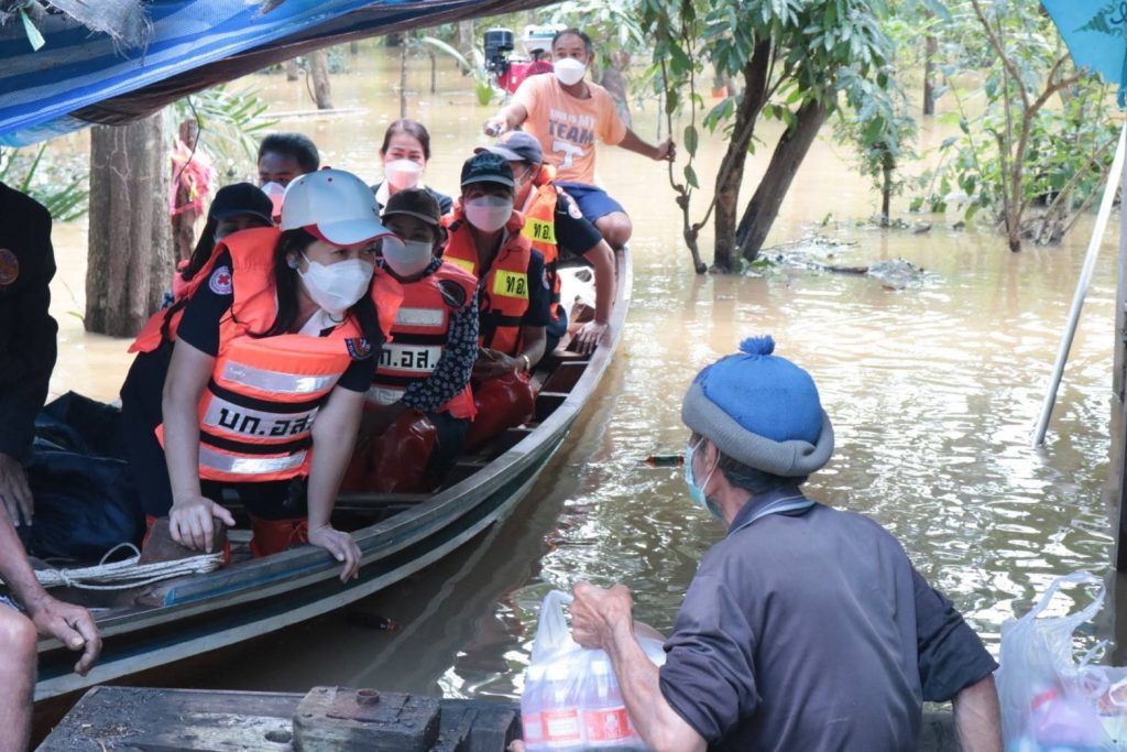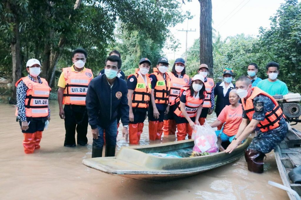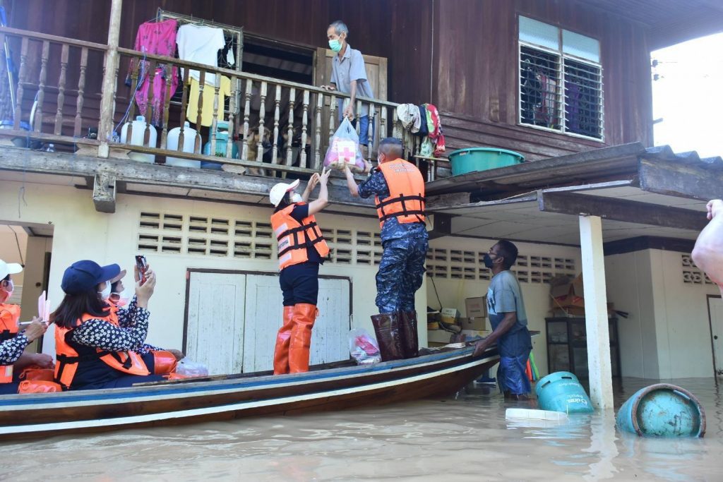 ในการนี้ นาวาอากาศเอก จักริน ภูวเดชาพงศ์เสนาธิการทหารอากาศกองบิน 7 และคณะได้นำถุงยังชีพ มาร่วมมอบให้กับประชาชนด้วย