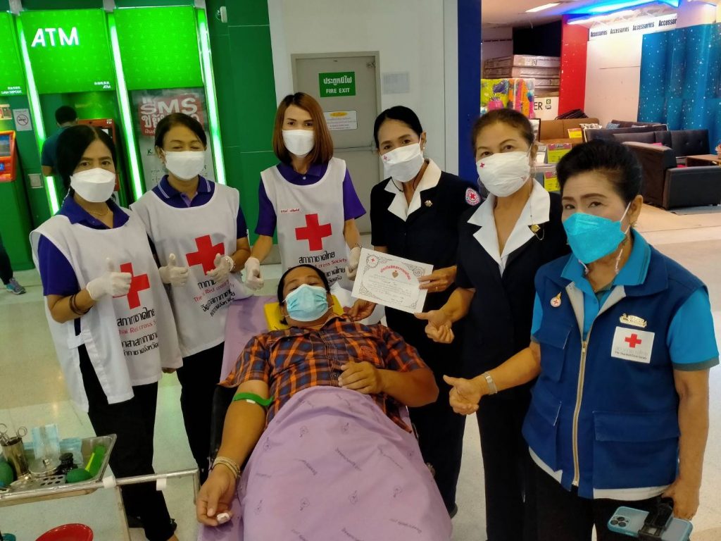 วันที่ 17 ธันวาคม 2564 นางละมัย เจริญโสภา นายกเหล่ากาชาดจังหวัดตรัง พร้อมด้วยคณะกรรมการเหล่ากาชาด สมาชิก เจ้าหน้าที่ และจิตอาสาสภากาชาดไทย ร่วมกับธนาคารเลือดโรงพยาบาลตรัง ออกหน่วยรับบริจาคโลหิต ดวงตา และอวัยวะ ณ บิ๊กซี ซุปเปอร์เซนเตอร์ สาขาตรัง ถนนรัษฎา อำเภอเมืองตรัง จังหวัดตรัง มีผู้บริจาคทั้งหมด 74 ราย ได้โลหิต 49 ยูนิต คิดเป็นปริมาณ 19,600 ซีซี. มีผู้แสดงความจำนงบริจาคดวงตา จำนวน 14 ราย และผู้แสดงความจำนงบริจาคอวัยวะ 14 ราย ผู้รับเข็มที่ระลึกบริจาคโลหิต 24 ครั้ง 1 ราย พร้อมมอบหน้ากากอนามัยกับสายคล้องคอ 50 ชิ้น