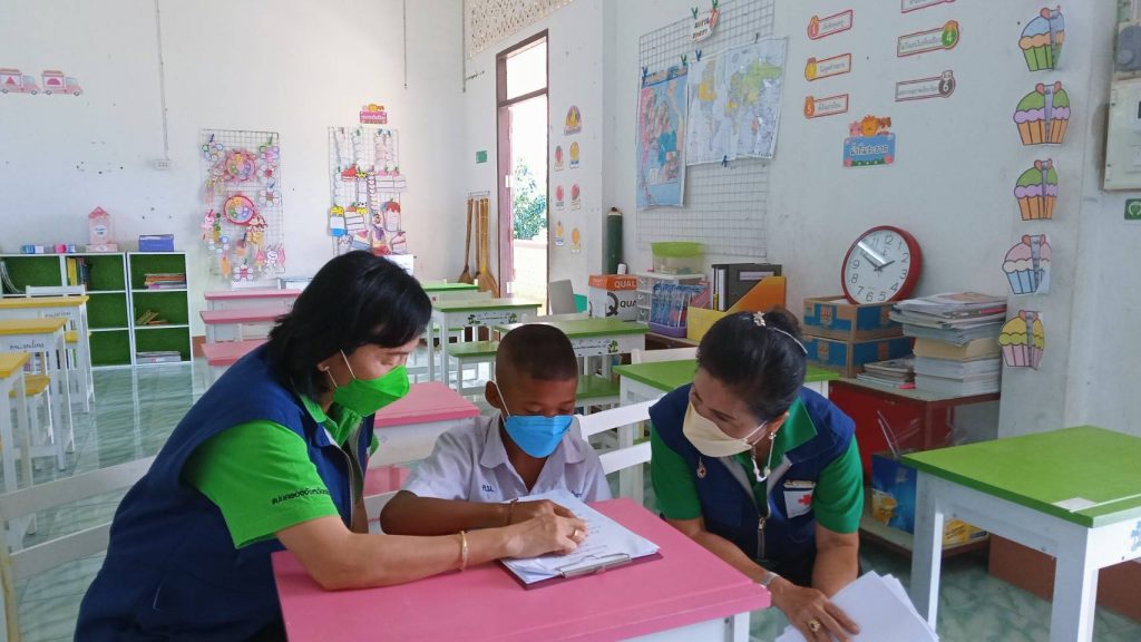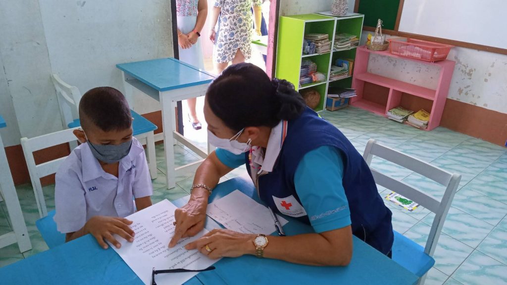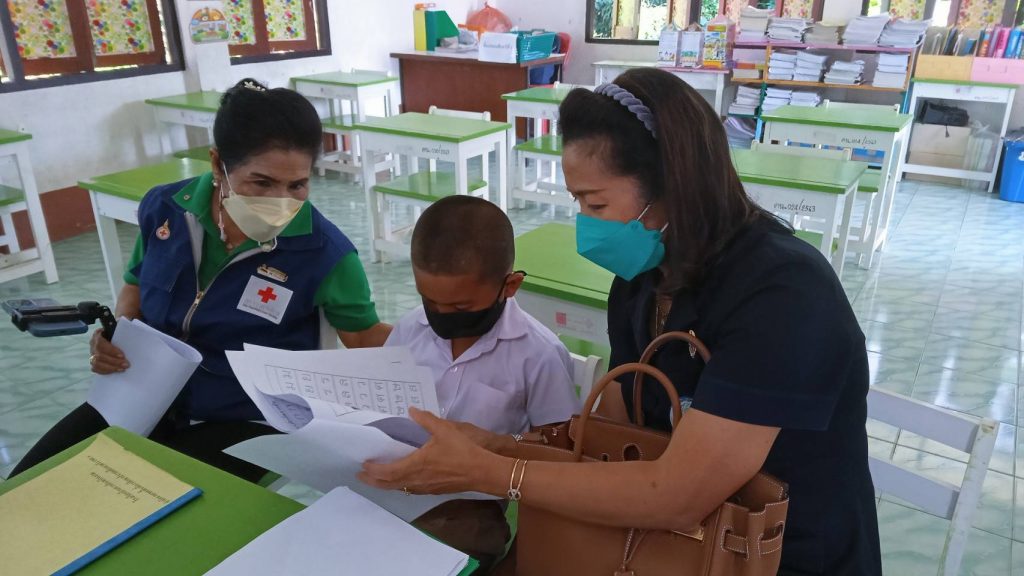 วันที่ 15 ธันวาคม 2564 นางละมัย เจริญโสภา นายกเหล่ากาชาดจังหวัดตรัง มอบหมายนางลักษณาพร อนันต์วรปัญญา รองนายกเหล่ากาชาดจังหวัดตรัง พร้อมคณะกรรมการและสมาชิก ร่วมกับศึกษานิเทศน์จังหวัดตรังและ กศน.ตรัง ลงพื้นที่เยี่ยมโรงเรียนกลุ่มเป้าหมาย ตามโครงการส่งเสริมและพัฒนาการพูด อ่าน เขียนภาษาไทย เพื่อสำรวจข้อมูลเด็กนักเรียนที่อ่านไม่ออกเขียนไม่ได้ ณ โรงเรียนบ้านโคกทราย โรงเรียนโพรงจระเข้และโรงเรียนบ้านควนอินทนินงาม อ.ย่านตาขาว จ.ตรัง