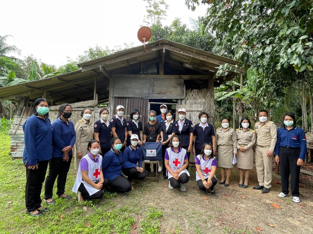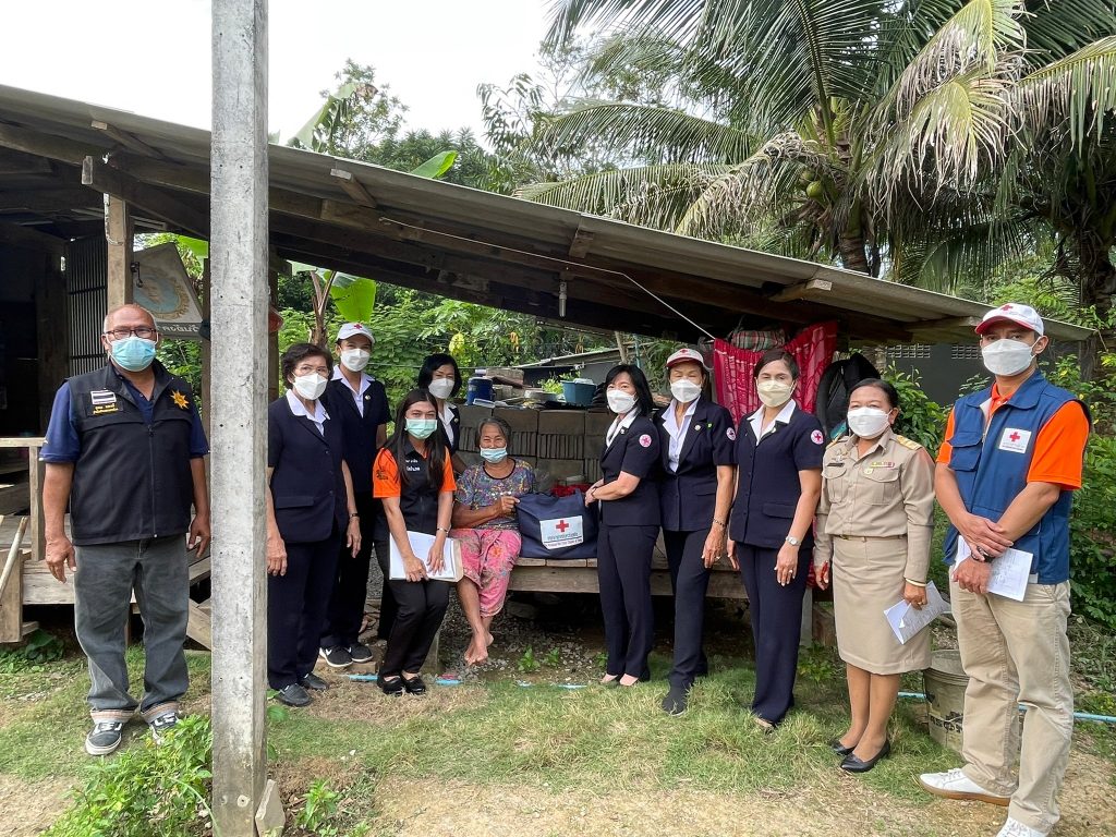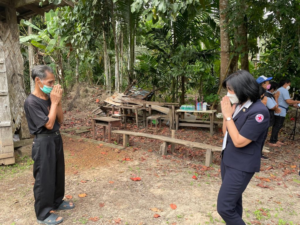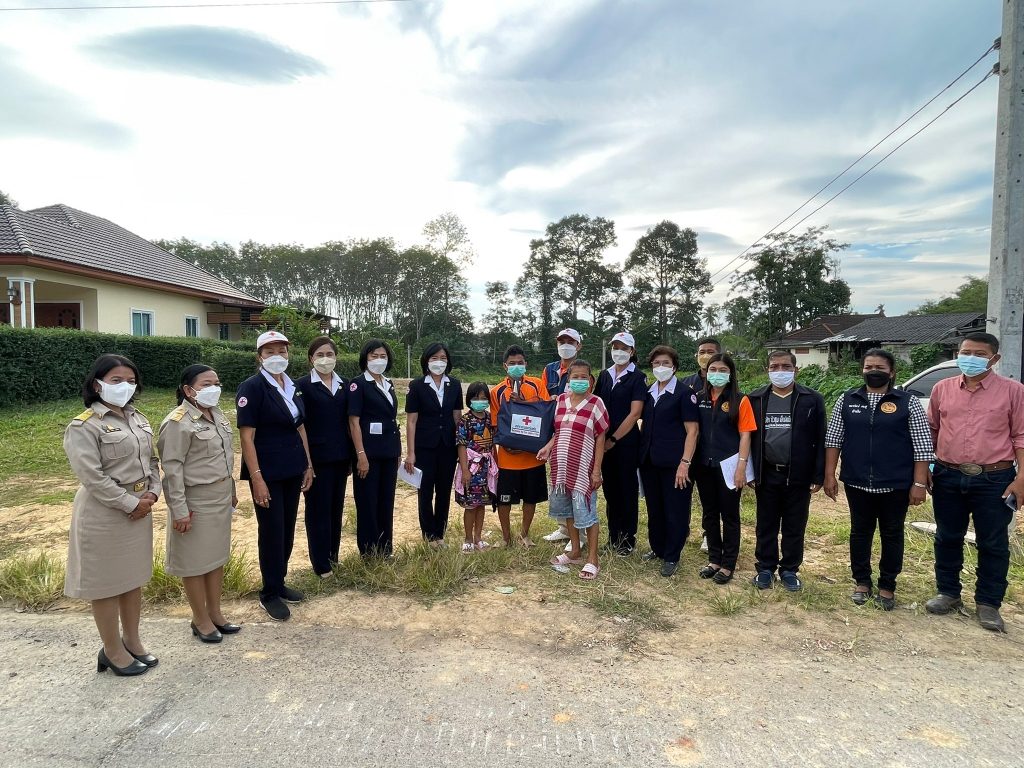 ในการนี้ เหล่ากาชาดจังหวัดตรัง มอบชุดธารน้ำใจ จำนวนคนละ 1 ชุด เพื่อช่วยเหลือเบื้องต้น