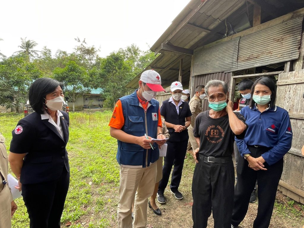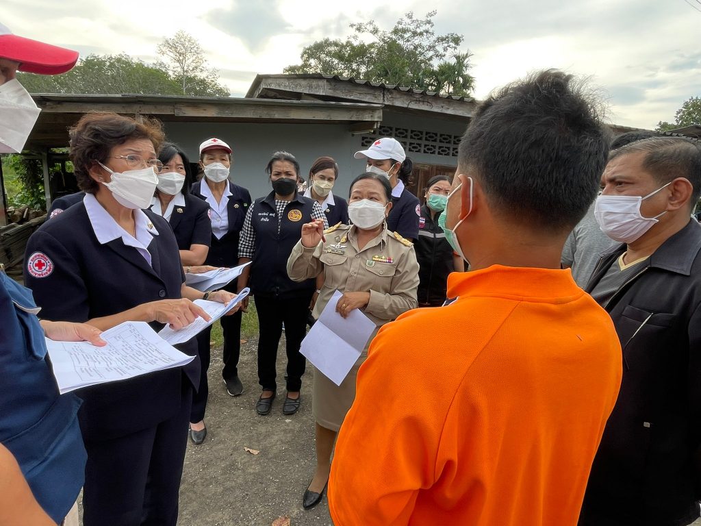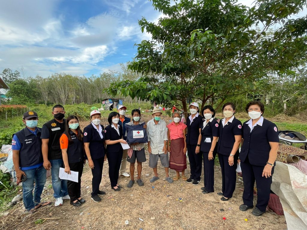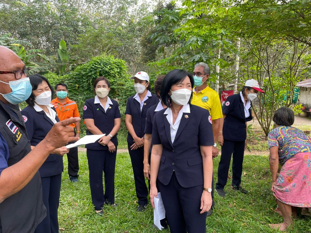 ในการนี้ เหล่ากาชาดจังหวัดตรัง มอบชุดธารน้ำใจ จำนวนคนละ 1 ชุด เพื่อช่วยเหลือเบื้องต้น