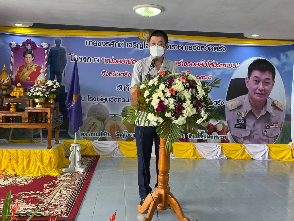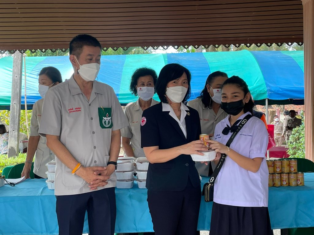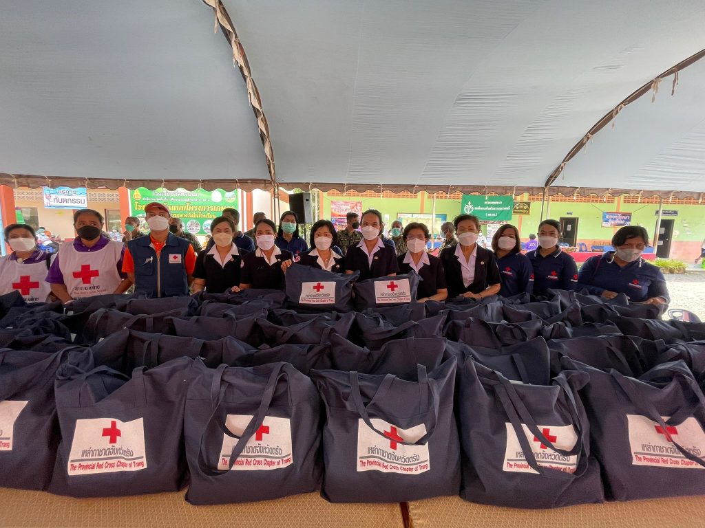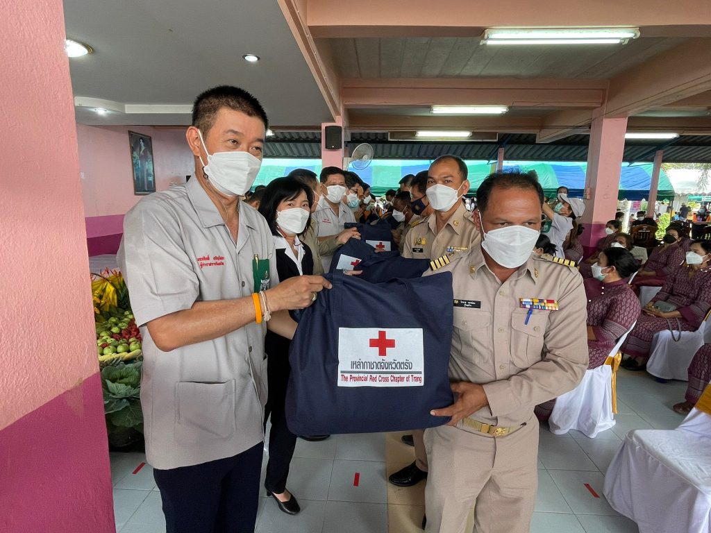 วันที่ 16 ธันวาคม 2564 นางละมัย เจริญโสภา นายกเหล่ากาชาดจังหวัดตรัง พร้อมด้วยนางลักษณาพร อนันต์วรปัญญา รองนายกเหล่ากาชาดจังหวัดตรัง คณะกรรมการ, สมาชิกเหล่ากาชาดจังหวัดตรัง และจิตอาสาสภากาชาดไทย ร่วมโครงการ “หน่วยบำบัดทุกข์ บำรุงสุข สร้างรอยยิ้มให้ประชาชน” จังหวัดตรัง และร่วมออกหน่วยแพทย์เคลื่อนที่ พอ.สว. ออกให้บริการประชาชน ณ โรงเรียนวัดควนเมา ต.ควนเมา อ.รัษฎา จ.ตรัง โดยมีนายขจรศักดิ์ เจริญโสภา ผู้ว่าราชการจังหวัดตรัง เป็นประธานในพิธี ในการนี้ เหล่ากาชาดจังหวัดตรัง มอบเครื่องอุปโภคบริโภคให้ผู้สูงอายุ ผู้พิการ และผู้ป่วยติดเตียง จำนวน 100 ชุด มอบแว่นสายตาให้ผู้สูงวัยและผู้ยากไร้จำนวน 83 อัน และมอบนมกล่องและขนมให้เด็กในพื้นที่