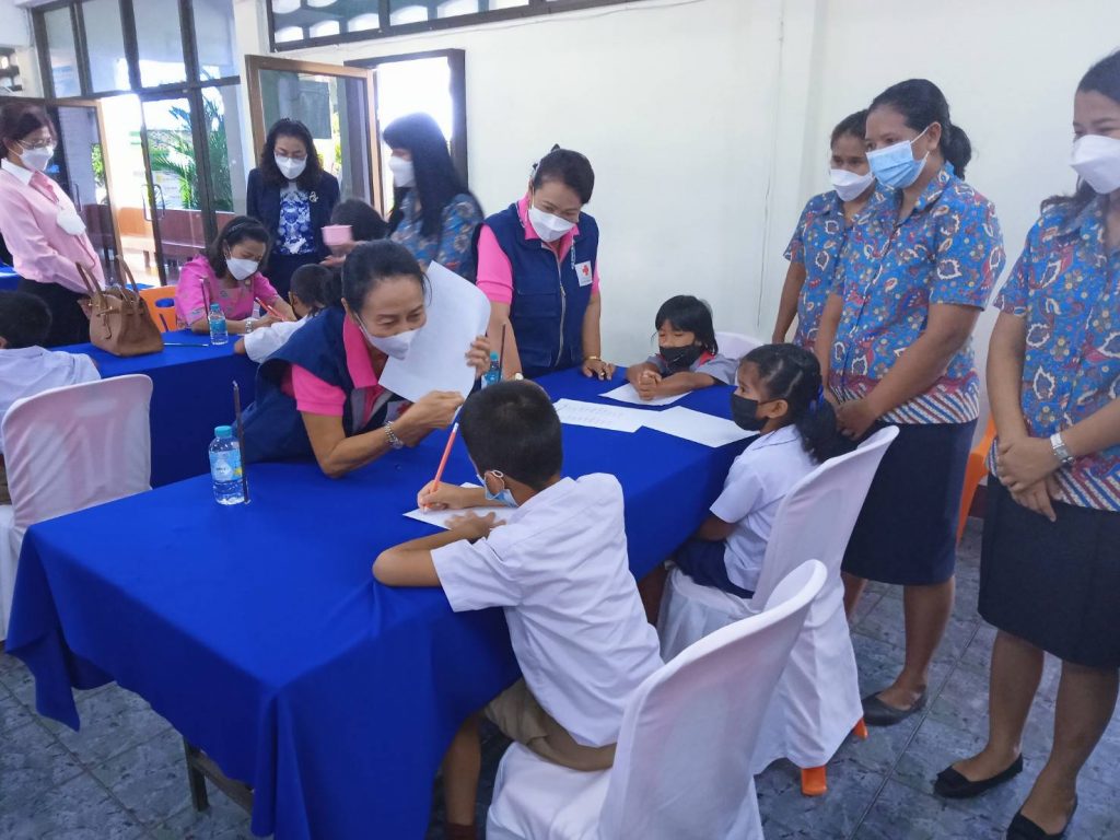 วันที่ 14 ธันวาคม 2564 นางละมัย เจริญโสภา นายกเหล่ากาชาดจังหวัดตรัง มอบหมายนางลักษณาพร อนันต์วรปัญญา รองนายกเหล่ากาชาดจังหวัดตรัง พร้อมคณะกรรมการและสมาชิก ร่วมกับศึกษานิเทศน์จังหวัดตรังและ กศน.ตรัง ลงพื้นที่เยี่ยมโรงเรียนกลุ่มเป้าหมาย ตามโครงการส่งเสริมและพัฒนาการพูด อ่านเขียนภาษาไทย เพื่อสำรวจข้อมูลเด็กนักเรียนที่อ่านไม่ออกเขียนไม่ได้ ณ โรงเรียนวัดธรรมาราม โรงเรียนจอมไตรและโรงเรียนบ้านหนองไทร อ.นาโยง จ.ตรัง