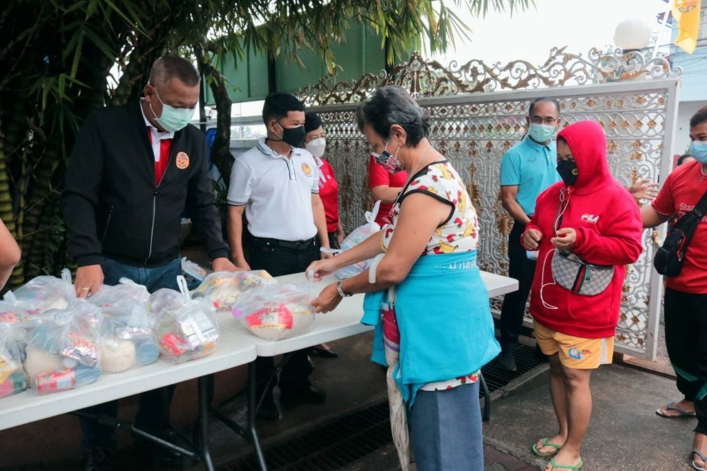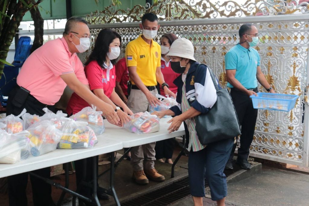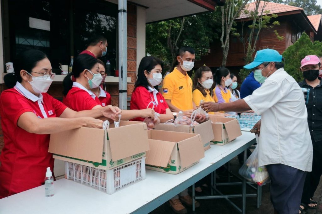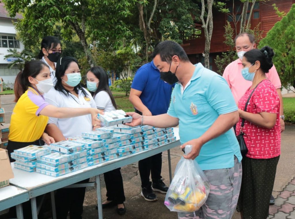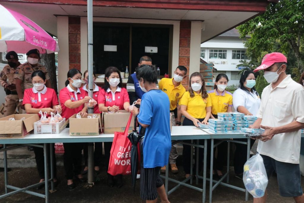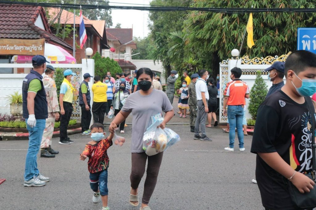 ในการนี้ นางอุรสา จินโต นายกเหล่ากาชาดจังหวัดสุราษฎร์ธานี/ประธานแม่บ้านมหาดไทยจังหวัดสุราษฎร์ธานีพร้อมด้วย ที่ปรึกษาฯ เหรัญญิกฯ สมาชิกเหล่ากาชาดจังหวัดสุราษฎร์ธานีและ สมาชิกชมรมแม่บ้านมหาดไทยจังหวัดสุราษฎร์ธานีร่วมกันแจกถุงยังชีพ จำนวน 50 ถุงเพื่อมอบให้กับประชาชนกลุ่มเปราะบางและผู้ที่ได้รับผลกระทบจากโรคโควิด-19โดยมีประชาชนกลุ่มเปราะบาง และผู้ที่ได้รับผลกระทบฯมาเข้ารับมอบสิ่งของเป็นจำนวนมาก ณ บริเวณในจวนผู้ว่าราชการจังหวัดสุราษฎร์ธานีอำเภอเมือง จังหวัดสุราษฎร์ธานี ซึ่งการจัดทำตู้ปันสุขนี้ ได้รับความร่วมมือเป็นอย่างดีจากหัวหน้าส่วนราชการ หน่วยงานภาครัฐ ภาคเอกชนและประชาชนในพื้นที่ ได้นำสิ่งของมาร่วมบริจาคทุกวันเพื่อแจกจ่ายให้กับผู้ที่ได้รับผลกระทบฯ เป็นจำนวนมาก