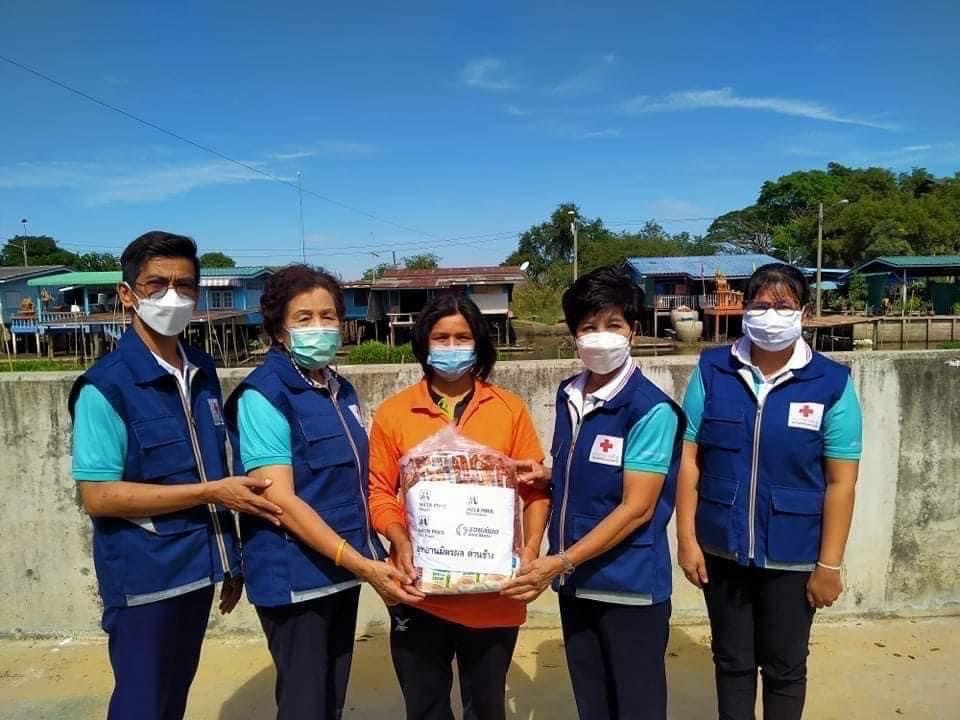 โดย เหล่ากาชาดจังหวัดสุพรรณบุรี มอบเครื่องอุปโภค – บริโภค รายละ 1 ชุด ณ อำเภอบางปลาม้า จังหวัดสุพรรณบุรี