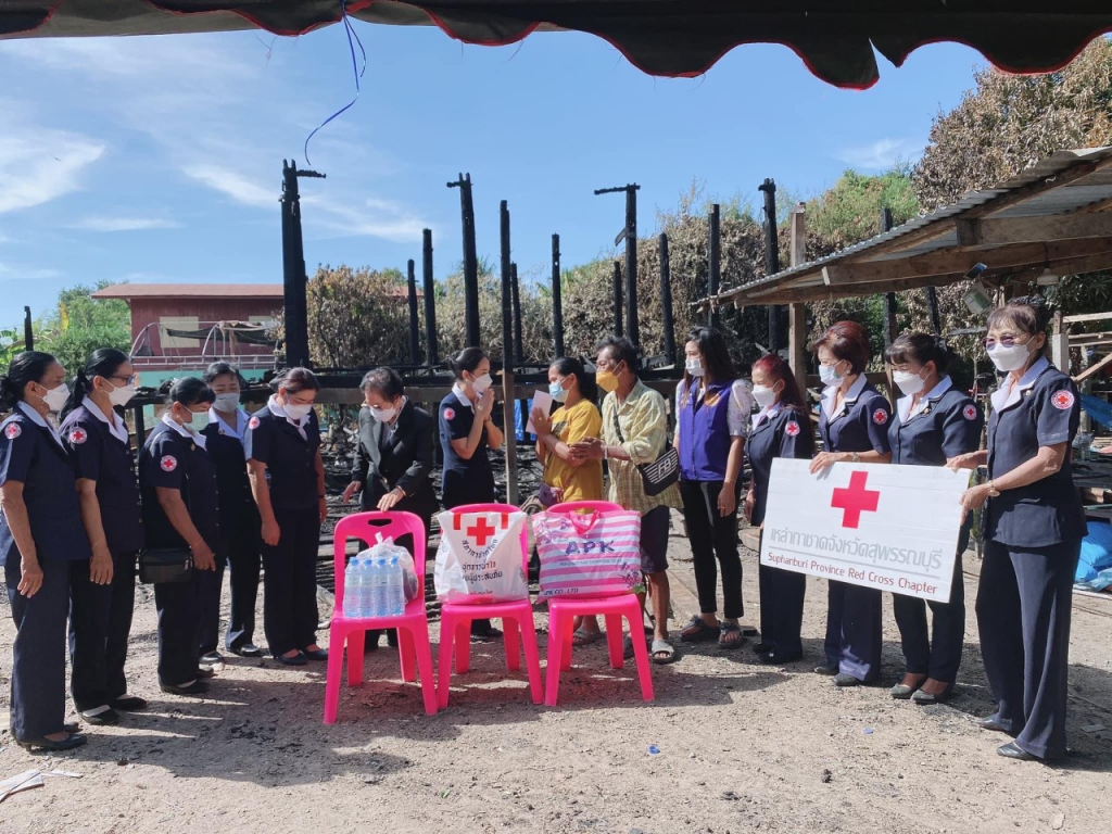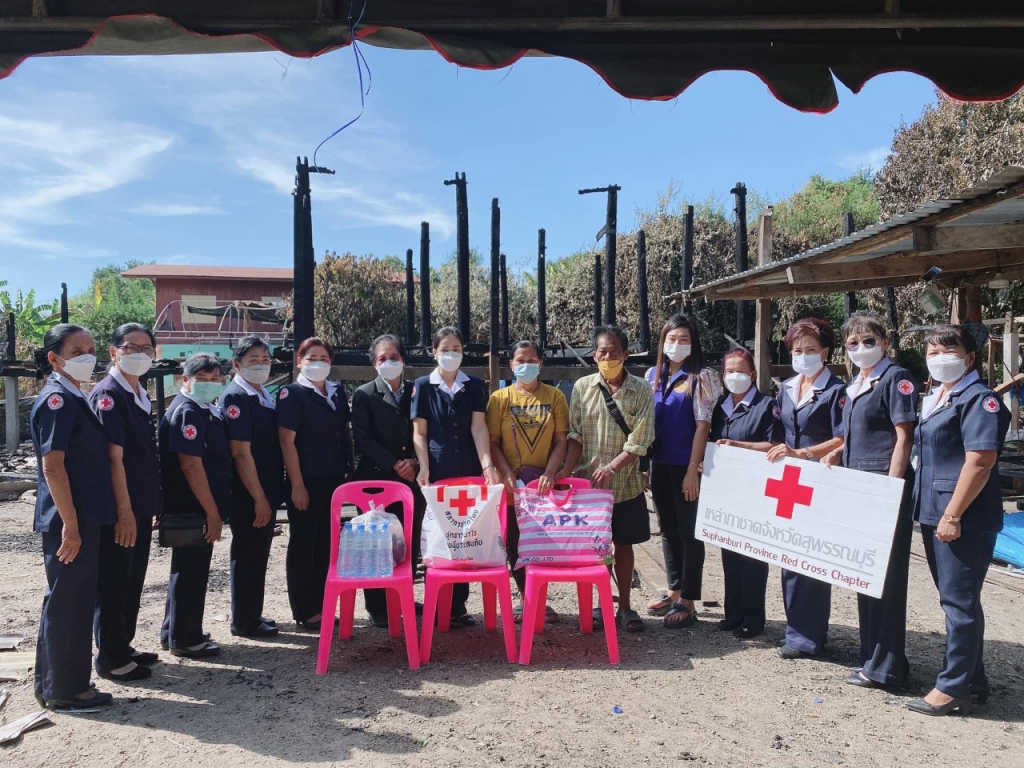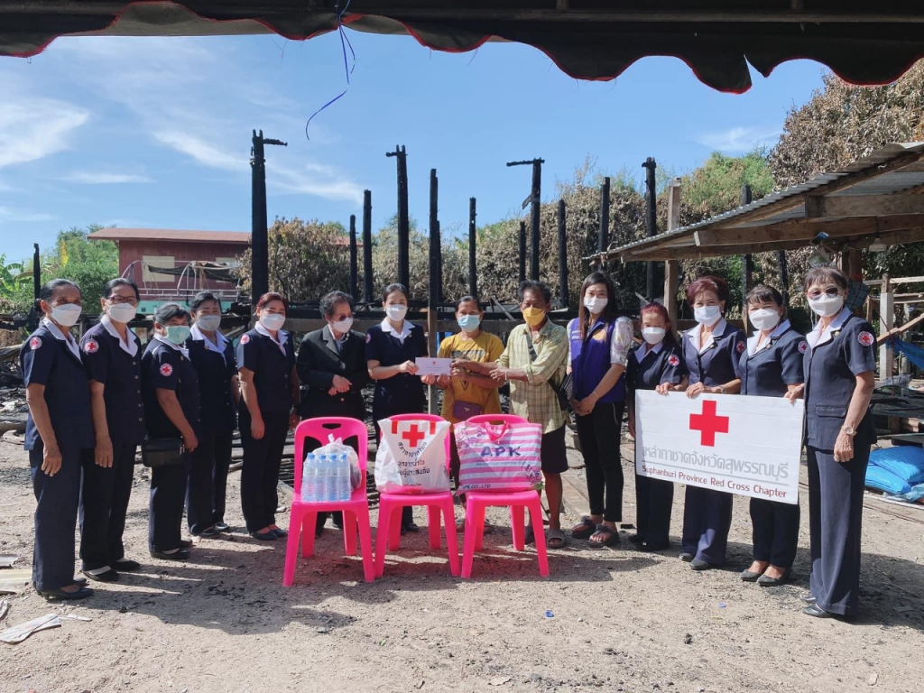 วันที่ 30 ธันวาคม 2564 นางนภัสสร สุวรรณประทีป นายกเหล่ากาชาดจังหวัดสุพรรณบุรี มอบหมายให้ นางฐิติพร ศิริโกศล รองนายกเหล่ากาชาดจังหวัด นางสุภาวดี บุญส่ง ที่ปรึกษาเหล่ากาชาดจังหวัด พร้อมด้วยกรรมการและสมาชิกเหล่ากาชาดจังหวัด เข้าเยี่ยมบรรเทาทุกข์ผู้ประสบอัคคีภัย ราย นางถนอม พันธุ์เรือง โดยเหล่ากาชาดจังหวัดสุพรรณบุรี มอบเครื่องอุปโภคบริโภค จำนวน 1 ชุด น้ำดื่ม ขนาด 600 มิลลิลิตร จำนวน 1 แพ็ค ผ้าห่ม จำนวน 1 ผืน กางเกงยีนส์ จำนวน 3 ตัว และเงินบรรเทาทุกข์เบื้องต้น จำนวน 4,000 บาท ณ บ้านเลขที่ 18 ม.4 ต.วังน้ำซับ อ.ศรีประจันต์ จ.สุพรรณบุรี