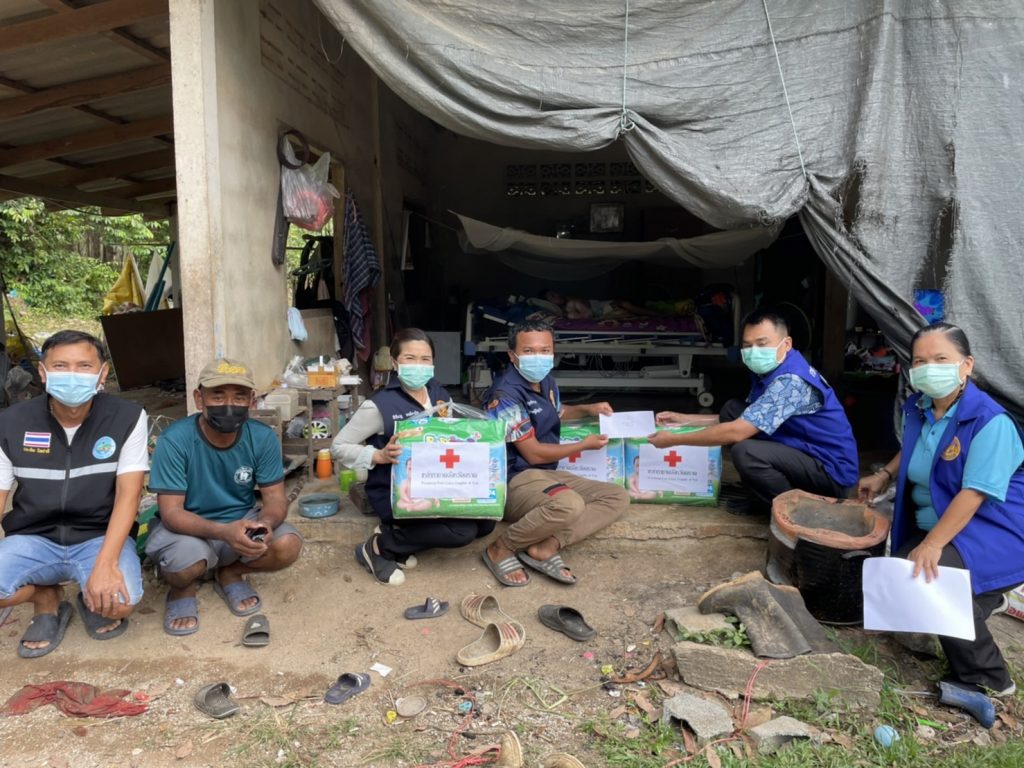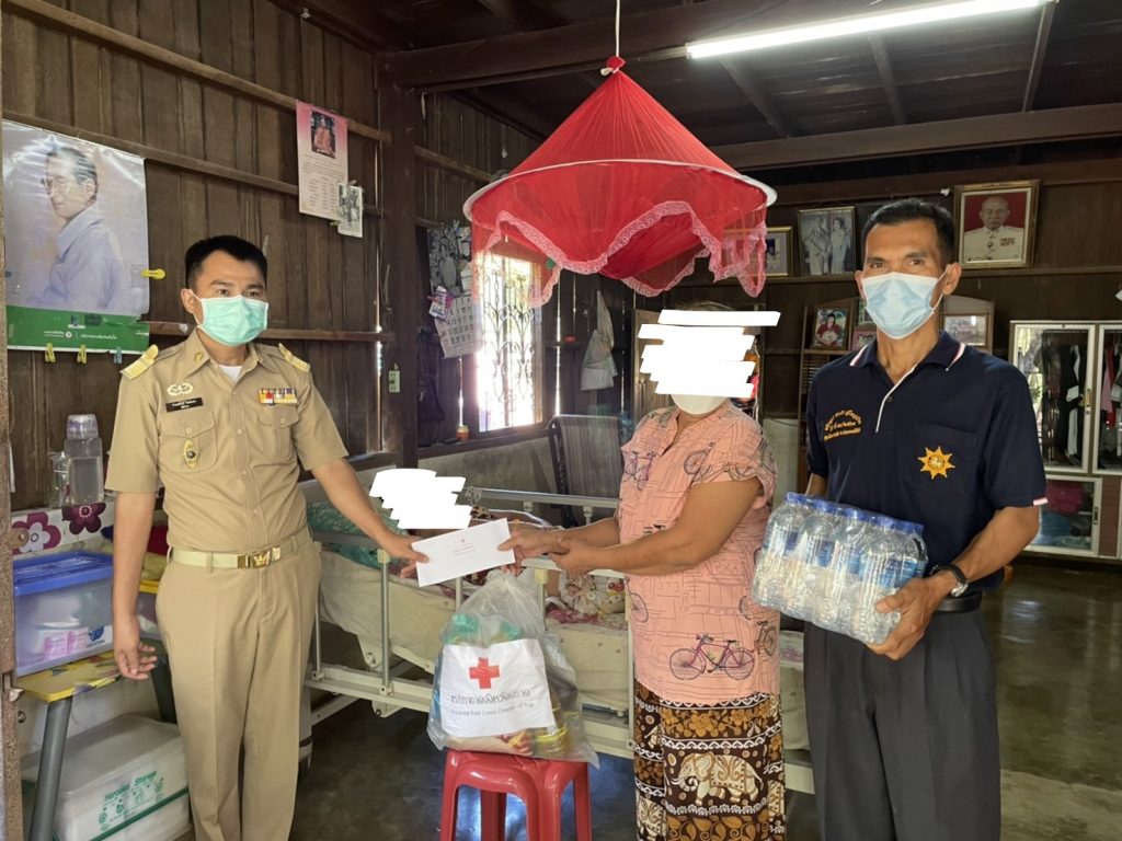 วันที่ 30 ธันวาคม 2564 นางชุลีพร เตรัตน์ นายกเหล่ากาชาดจังหวัดตราด มอบหมายให้นายจำนงค์ศักดิ์ ทิพย์เนตร ปลัดอาวุโส รักษาการนายอำเภอเขาสมิง เป็นผู้แทนนายกเหล่ากาชาดจังหวัดตราด พร้อมด้วยฝ่ายปกครอง ผู้นำท้องถิ่น และอาสาสมัครสาธารณสุขประจำหมู่บ้าน (อสม.) ออกเยี่ยมให้กำลังใจ พร้อมมอบสิ่งของ และเงินสงเคราะห์ ให้กับครอบครัวผู้ป่วยติดเตียงยากไร้ ในพื้นที่อำเภอเขาสมิง จำนวน 36 ราย ในห้วงวันที่ 24 – 27 ธันวาคม 2564 ซึ่งเหล่ากาชาดจังหวัดตราดได้จัดทำโครงการสงเคราะห์ผู้ป่วยติดเตียงยากไร้ ประจำปีงบประมาณ พ.ศ. 2565 เพื่อให้ความช่วยเหลือครอบครัวผู้ป่วยติดเตียงยากไร้ในพื้นที่จังหวัดตราด จำนวนกว่า 200 ราย