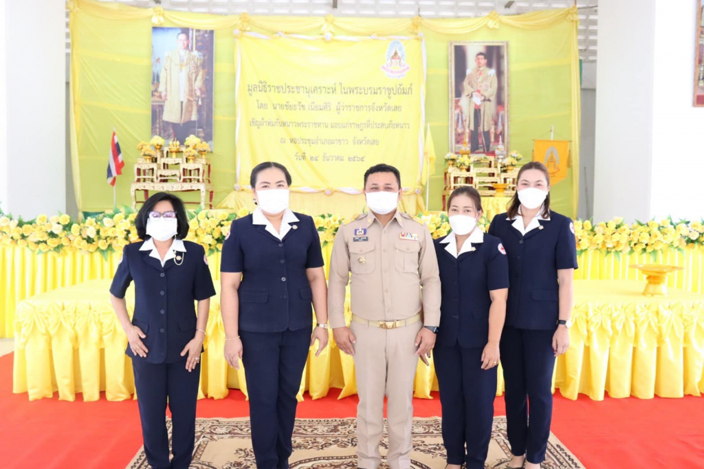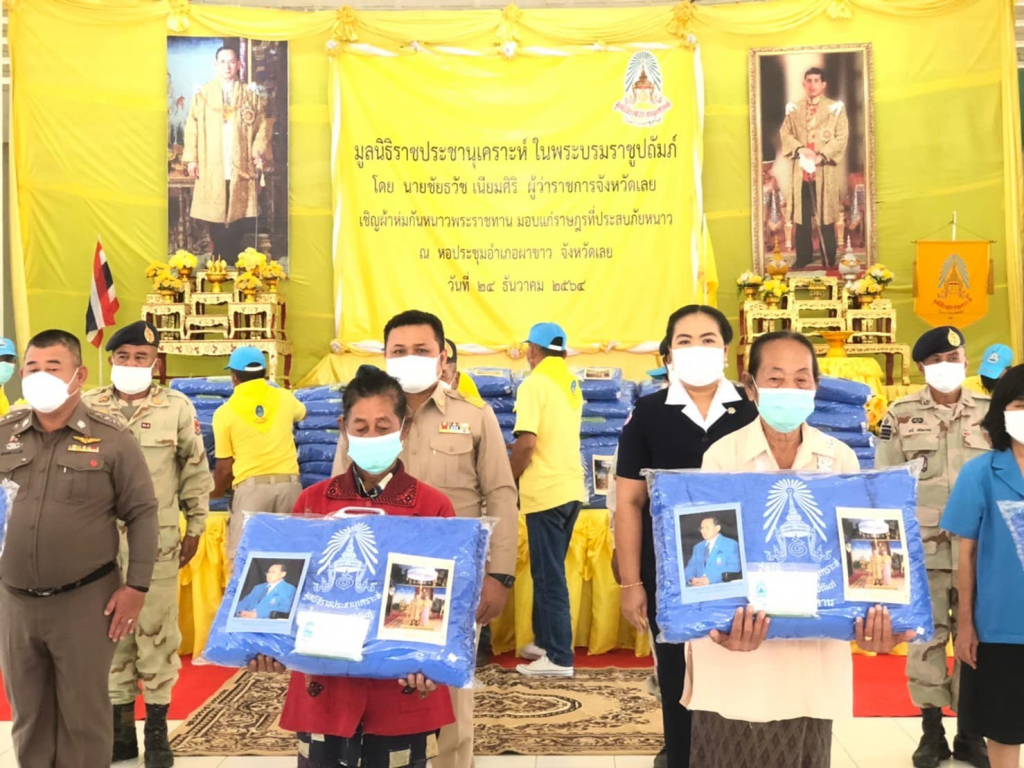 วันที่ 24 ธันวาคม 2564 นางนงค์นิตย์ เนียมศิริ นายกเหล่ากาชาดจังหวัดเลย มอบหมายให้นางนริศรา สุวรรณโค ภริยานายอำเภอผาขาว/กรรมการเหล่ากาชาดจังหวัดเลย พร้อมสมาชิกเหล่ากาชาดจังหวัดเลย ร่วมพิธีเชิญผ้าห่มกันหนาวพระราชทาน มูลนิธิราชประชานุเคราะห์ ในพระบรมราชูปถัมภ์ มีนายผดุงศักดิ์ หาญปรีชาสวัสดิ์ รองผู้ว่าราชการจังหวัดเลย เป็นผู้เชิญผ้าห่มกันหนาวพระราชทาน มอบแก่ราษฎรผู้ประสบภัยหนาวในพื้นที่อำเภอผาขาว จังหวัดเลย จำนวน 150 ชุด โดยมีนายอภินันต์ สุวรรณโค นายอำเภอผาขาว ทหาร ตำรวจ ปลัดอำเภอผาขาว เเละหัวหน้าส่วนราชการ ร่วมพิธีฯ ณ หอประชุมอำเภอผาขาว จังหวัดเลย