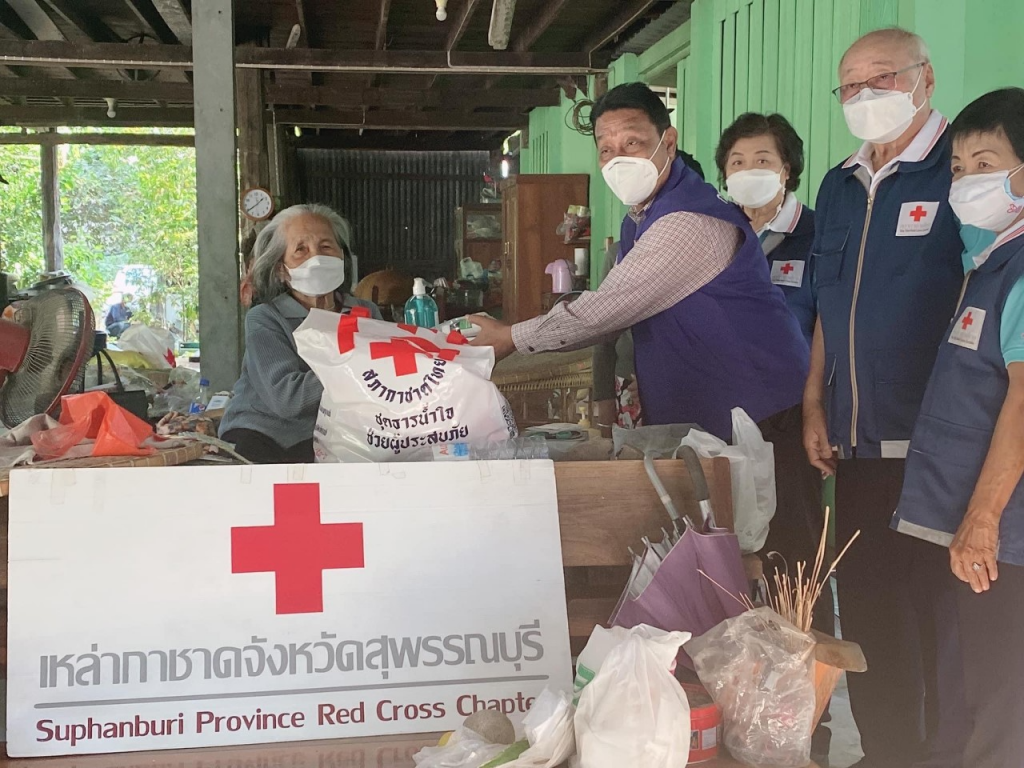 วันที่ 23 ธันวาคม 2564 นางนภัสสร สุวรรณประทีป นายกเหล่ากาชาดจังหวัดสุพรรณบุรี นางฐิติพร ศิริโกศล รองนายกเหล่ากาชาดจังหวัด พร้อมด้วยกรรมการและสมาชิกเหล่ากาชาดจังหวัด ลงพื้นที่เยี่ยมให้กำลังใจผู้ยากไร้ ราย นางดำ เวชวิฐาน อายุ 90 ปี โดย เหล่ากาชาดจังหวัดสุพรรณบุรี มอบเครื่องอุปโภค – บริโภค จำนวน 1 ชุด คุณชำนาญ อัครไพศาลกุล กรรมการเหล่ากาชาดจังหวัด มอบเงินช่วยเหลือ จำนวน 500 บาท ณ บ้านเลขที่ 460 ม.5 ต.ดอนเจดีย์ อ.ดอนเจดีย์ จ.สุพรรณบุรี