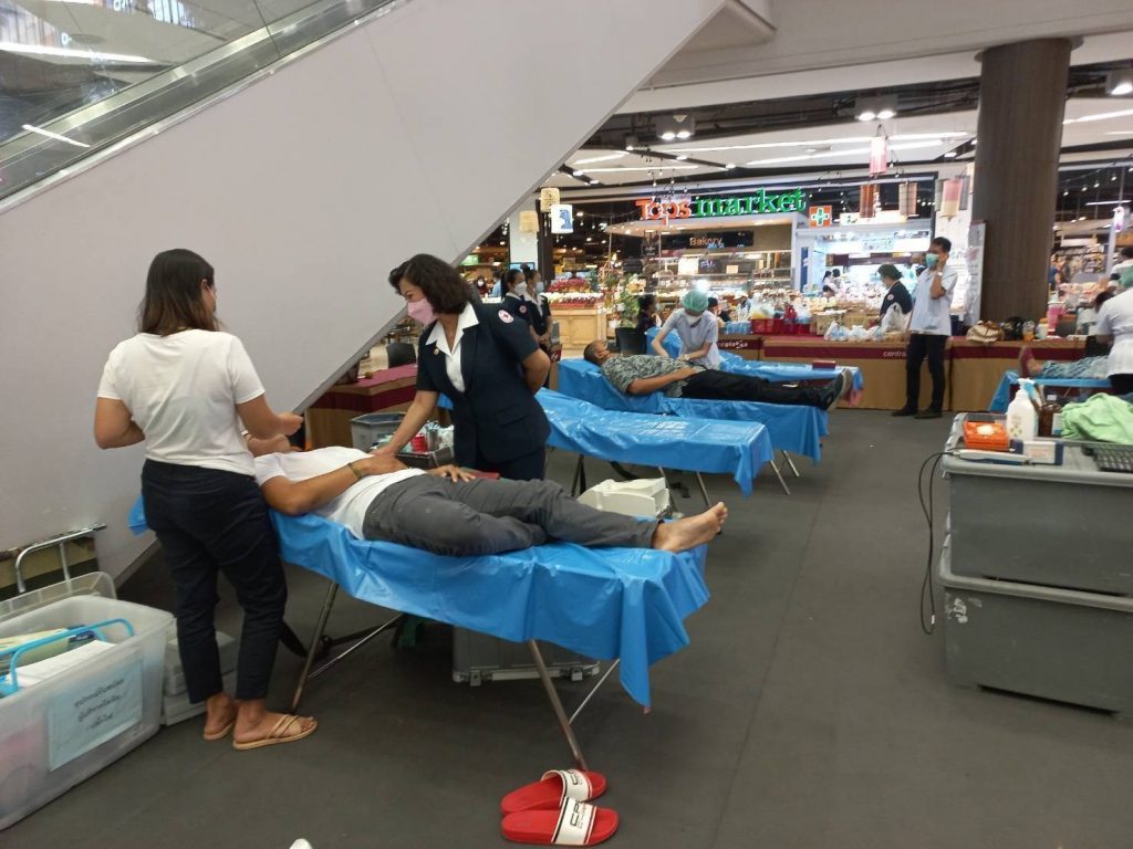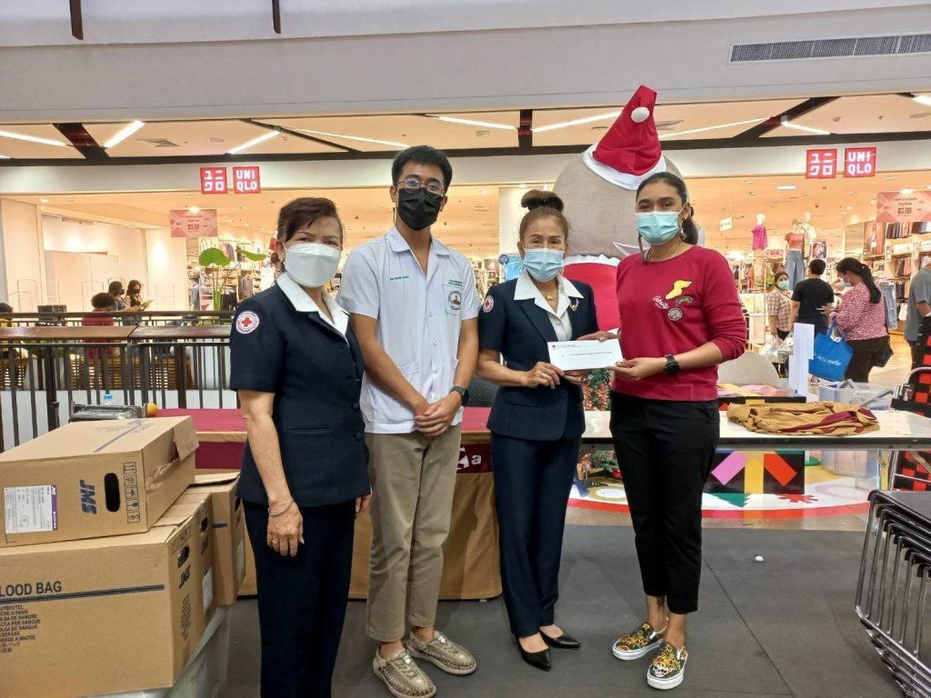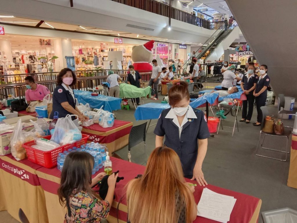 วันที่ 4 มกราคม 2565 นางอุรสา จินโต นายกเหล่ากาชาดจังหวัดสุราษฎร์ธานี มอบหมายให้ ที่ปรึกษา/กรรมการ/สมาชิกเหล่ากาชาดจังหวัดสุราษฎร์ธานี และธนาคารเลือด โรงพยาบาลสุราษฎร์ธานี หอการค้าจังหวัดสุราษฎร์ธานี และ YEC สุราษฎร์ธานี ร่วมกับบริษัท เซ็นทรัลพัฒนา ดีเวลลอปเม้นท์ จำกัด จัดกิจกรรมรับบริจาคโลหิต ดวงตา และอวัยวะ “มั่นใจ ปลอดภัย บริจาคโลหิต ฝ่าวิกฤต COVID-19 ไปด้วยกัน” เพื่อเป็นการจัดหาโลหิตสำหรับใช้ในการรักษาผู้ป่วย