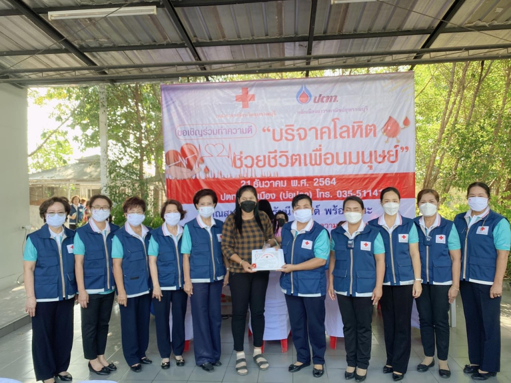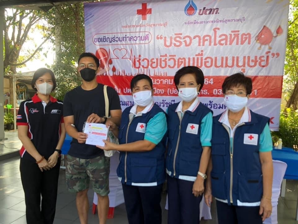 วันที่ 21 ธันวาคม 2564 นางนภัสสร สุวรรณประทีป นายกเหล่ากาชาดจังหวัดสุพรรณบุรี นางณัฐนันท์ ทองคำ นางฐิติพร ศิริโกศล นางรัตนาภรณ์ ยั่งยืน รองนายกเหล่ากาชาดจังหวัด พร้อมด้วยที่ปรึกษา กรรมการและสมาชิกเหล่ากาชาดจังหวัด ออกหน่วยรับบริจาคโลหิต ดวงตา อวัยวะ ณ ปั๊ม ปตท.เลี่ยงเมือง อ.เมืองสุพรรณบุรี จ.สุพรรณบุรี โดยได้รับโลหิตบริจาค จำนวน 64 ยูนิต มีผู้แสดงความจำนงบริจาคดวงตา จำนวน 3 ราย อวัยวะ 2 ราย