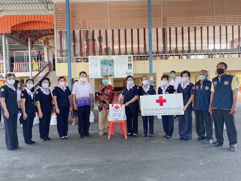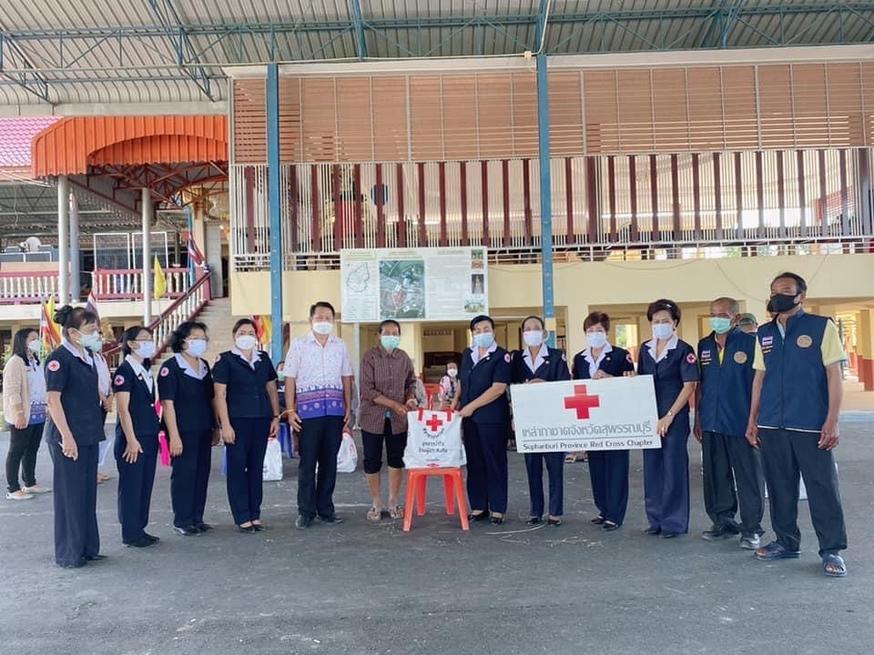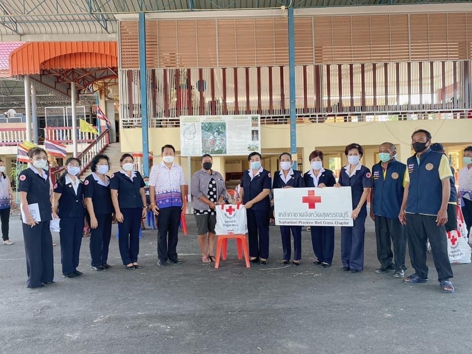โดย เหล่ากาชาดจังหวัดสุพรรณบุรี มอบเครื่องอุปโภค – บริโภค รายละ 1 ชุด ณ อำเภอศรีประจันต์ จังหวัดสุพรรณบุรี