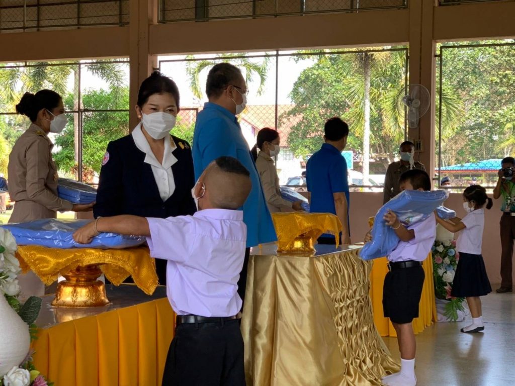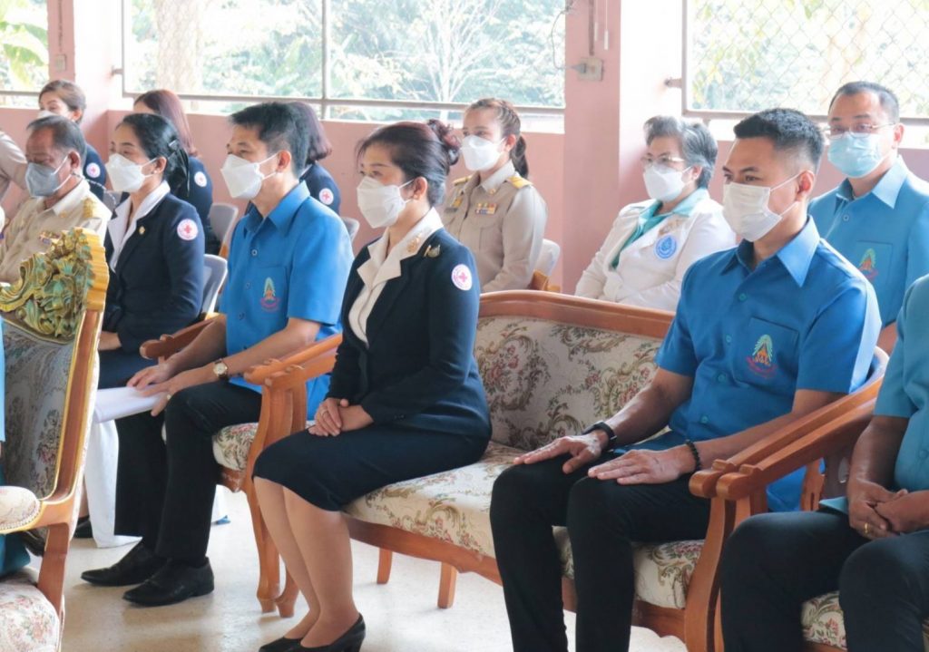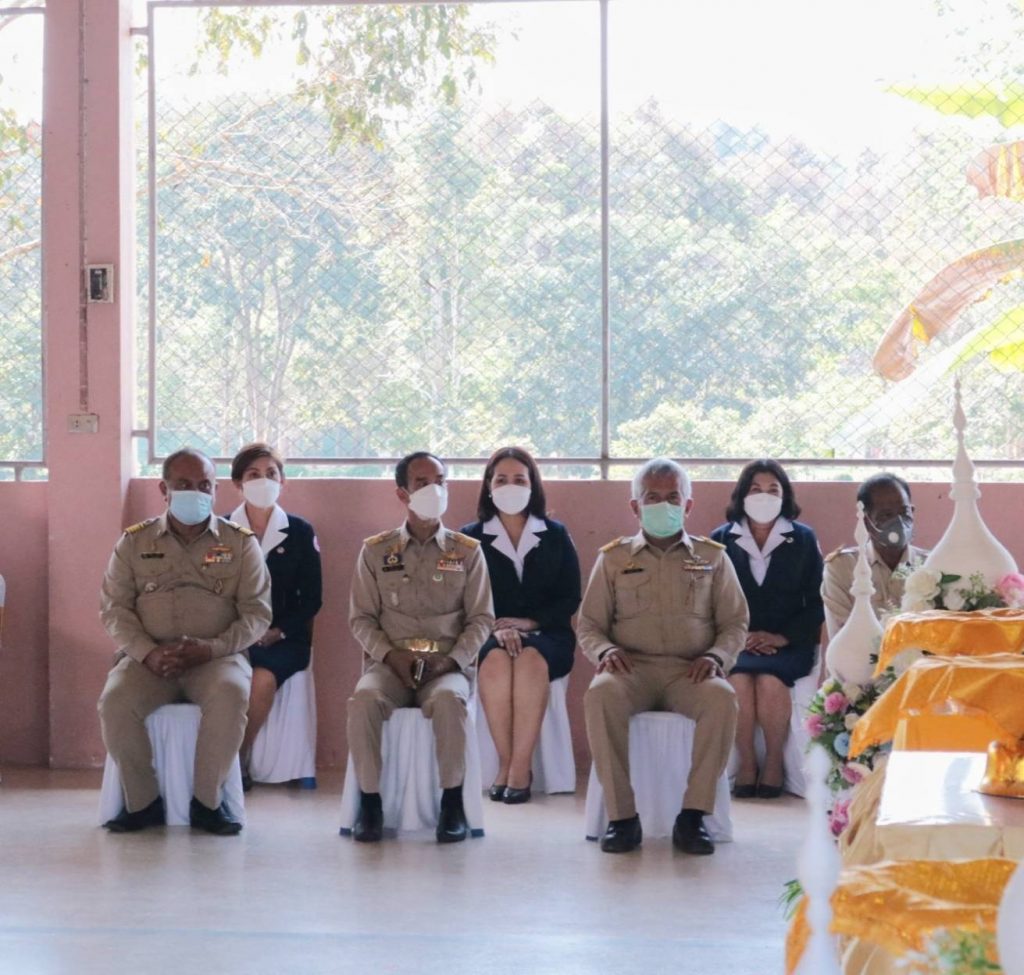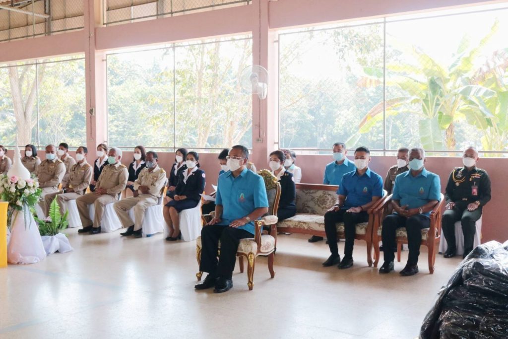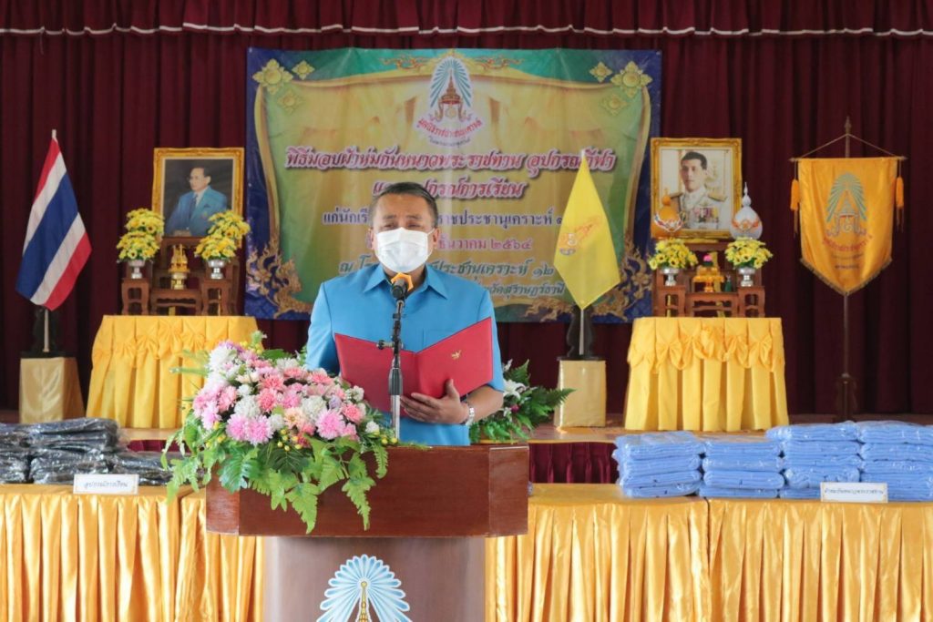 โดยมี นางอุรสา จินโต นายกเหล่ากาชาดจังหวัดสุราษฎร์ธานี/ประธานแม่บ้านมหาดไทยจังหวัดสุราษฎร์ธานีนายมนตรา พรมสินธุ ปลัดจังหวัดสุราษฎร์ธานีนายจำนง สวัสดิ์วงศ์ ป้องกันและบรรเทาสาธารณภัยจังหวัดสุราษฎร์ธานีนายกัมปนาท กลิ่นเสาวคนธ์ นายอำเภอบ้านนาสาร หัวหน้าส่วนราชการรองนายกเหล่ากาชาดจังหวัดสุราษฎร์ธานี/รองประธานแม่บ้านมหาดไทยจังหวัดสุราษฎร์ธานีที่ปรึกษาฯ สมาชิกเหล่ากาชาดจังหวัดสุราษฎร์ธานีสมาชิกชมรมแม่บ้านมหาดไทยจังหวัดสุราษฎร์ธานีและหน่วยงานอื่นๆ ที่เกี่ยวข้องเข้าร่วมในพิธีฯ ครั้งนี้ด้วย ทั้งนี้ นายสุชาติ แสงพรม พมจ.สุราษฎร์ธานีในฐานะกรรมการ และผู้ช่วยเลขานุการ ฝ่ายสังคมสงเคราะห์ประจำจังหวัดได้กล่าวรายงาน การมอบผ้าห่มกันหนาวพระราชทาน จำนวน 64 ผืนอุปกรณ์การเรียน กระเป๋านักเรียน จำนวน 262 ใบ และมอบอุปกรณ์กีฬาแก่ ผู้อำนวยการโรงเรียนราชประชานุเคราะห์ 12 จำนวน 1 ชุด เพื่อเป็นขวัญและกำลังใจแก่นักเรียนผู้ได้รับพระราชทานในครั้งนี้