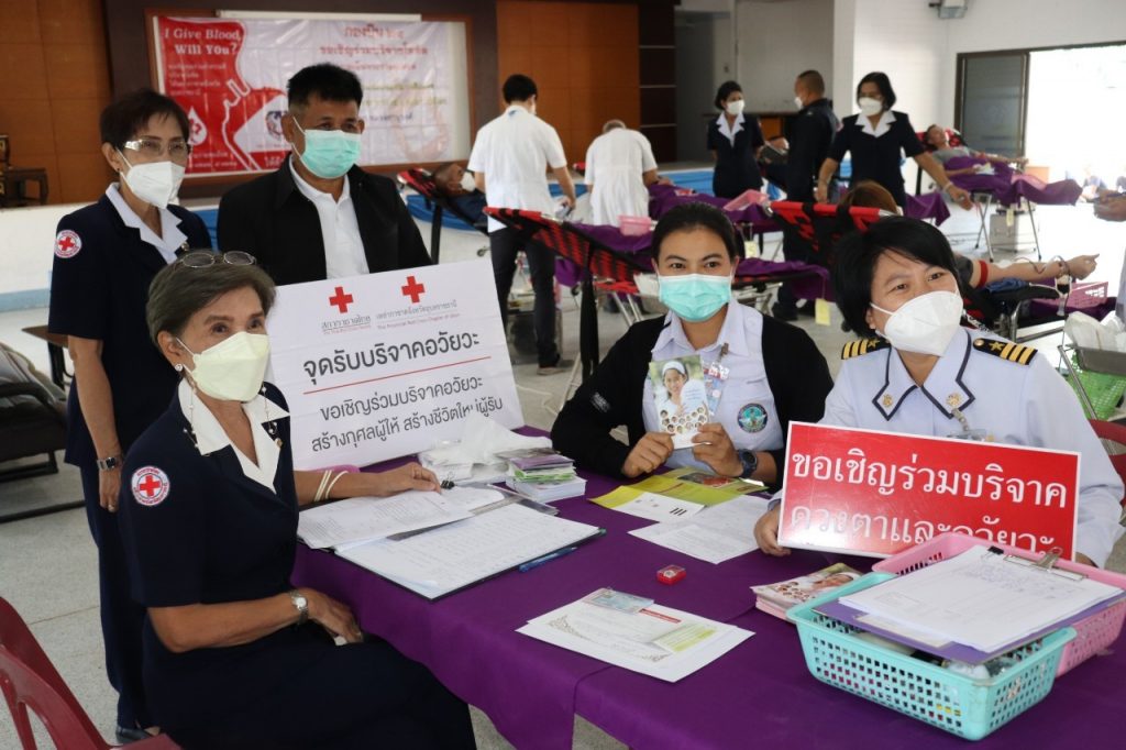 วันที่ 2 ธันวาคม 2564 นางศลิษา ภิรมย์รัตน์ นายกเหล่ากาชาดจังหวัดอุบลราชธานี พร้อมด้วยนางโยษิตา สังเกตุการณ์ สมาชิกเหล่ากาชาดจังหวัดอุบลราชธานี นางศศิธร ชูเตชะ สมาชิกเหล่ากาชาดจังหวัดอุบลราชธานี นางสำเนียง อดทน สมาชิกเหล่ากาชาดจังหวัดอุบลราชธานี นางพจนีย์ จักฤทธิ์ สมาชิกเหล่ากาชาดจังหวัดอุบลราชธานี นายวันชัย ชนะวงค์ เจ้าหน้าที่บันทึกข้อมูลประจำสำนักงานเหล่ากาชาดจังหวัดอุบลราชธานี นางสาวภักดิ์พานิตตา โอบอ้วนกีรติ เจ้าหน้าที่ประจำสำนักงานเหล่ากาชาดจังหวัดอุบลราชธานี ร่วมออกหน่วยรับบริจาคโลหิต ร่วมกับโรงพยาบาลสรรพสิทธิประสงค์ จังหวัดอุบลราชธานี ณ กองบิน 21 อำเภอเมืองอุบลราชธานี จังหวัดอุบลราชธานี ยอดผู้แสดงความจำนง บริจาคโลหิตทั้งหมด จำนวน 141 ราย ผู้บริจาคโลหิตที่ไม่ผ่าน จำนวน 77 รายผู้บริจาคโลหิตที่ผ่าน จำนวน 64 รายกรุ๊ป A จำนวน 12 รายกรุ๊ป B จำนวน 20 รายกรุ๊ป O จำนวน 31 ราย กรุ๊ป A,B จำนวน 1 รายผู้เเสดงความจำนงบริจาค ดวงตา อวัยวะ เเละร่างกาย บริจาค ดวงตา จำนวน 8 รายบริจาค อวัยวะ จำนวน 8 รายบริจาค ร่างกาย จำนวน 5 รายและกิจกรรมในครั้งนี้จัดขึ้นภายใต้มาตรการป้องกันการแพร่ระบาดของไวรัสโคโรน่า 2019 ด้วยการสวมหน้ากากอนามัยและการเว้นระยะห่าง