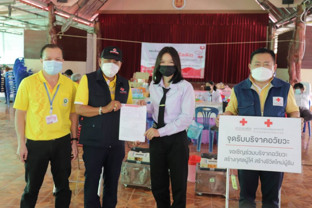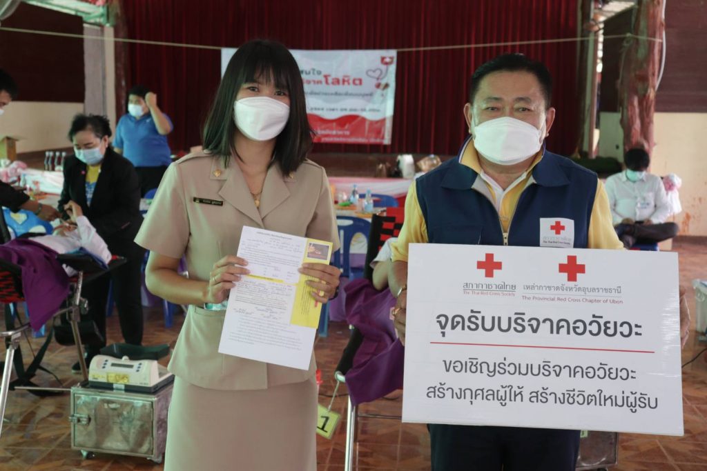 วันที่ 22 พฤศจิกายน 2564 นางศลิษา ภิรมย์รัตน์ นายกเหล่ากาชาดจังหวัดอุบลราชธานี มอบหมายให้นางสาวนฤมล เนื้ออ่อน กรรมการเหล่ากาชาดจังหวัดอุบลราชธานี นางจำนง สองสีดา กรรมการเหล่ากาชาดจังหวัดอุบลราชธานี นางสมพร มัลลานู กรรมการเหล่ากาชาดจังหวัดอุบลราชธานี นายปัญญา ชากะจะ กรรมการเหล่ากาชาดจังหวัดอุบลราชธานี นายประเสริฐ รวยเลิศ สมาชิกเหล่ากาชาดจังหวัดอุบลราชธานี ร่วมออกหน่วยรับบริจาคโลหิต ร่วมกับโรงพยาบาลสรรพสิทธิประสงค์ จังหวัดอุบลราชธานี ณ วิทยาลัยเทคนิคพิบูลมังสาหาร อำเภอพิบูลมังสาหาร จังหวัดอุบลราชธานี ยอดผู้บริจาคโลหิตทั้งหมด จำนวน 32 ราย กรุ๊ป O จำนวน 14 รายกรุ๊ป A จำนวน 8 รายกรุ๊ป B จำนวน 7 รายกรุ๊ป A,B จำนวน 3 รายผู้เเสดงความจำนงบริจาค ดวงตา อวัยวะ เเละร่างกาย บริจาค ดวงตา จำนวน 8 รายบริจาค อวัยวะ จำนวน 7 รายบริจาค ร่างกาย จำนวน 8 รายและกิจกรรมในครั้งนี้จัดขึ้นภายใต้มาตรการป้องกันการแพร่ระบาดของไวรัสโคโรน่า 2019 ด้วยการสวมหน้ากากอนามัยและการเว้นระยะห่าง