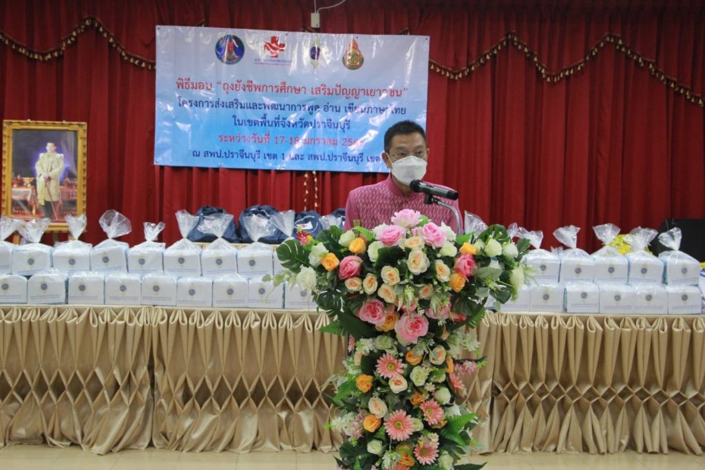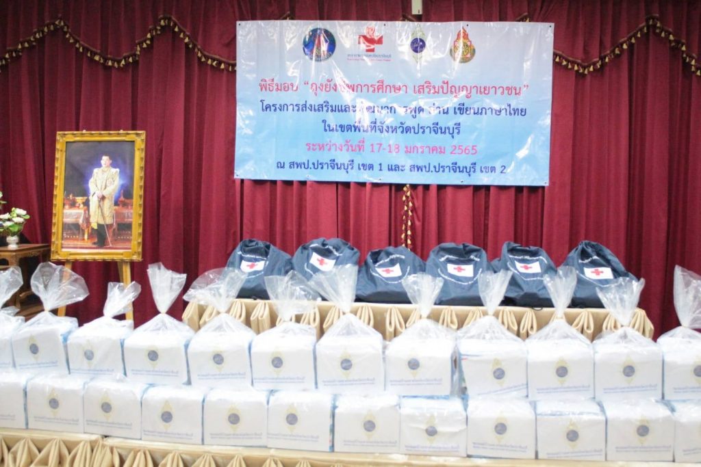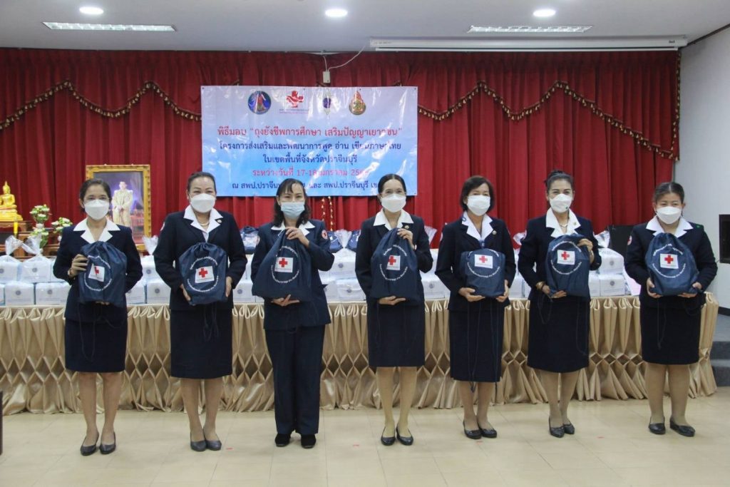 วันที่ 17 มกราคม 2565 นายวรพันธ์ุ สุวัณณุสส์ ผู้ว่าราชการจังหวัดปราจีนบุรี พร้อมด้วยนางมัทนา สุวัณณุสส์ นายกเหล่ากาชาดจังหวัดปราจีนบุรี นายอนุชิต สังฆสุวรรณ นายพงษ์สิทธิ์ เนื่องจำนงค์ รองผู้ว่าราชการจังหวัดปราจีนบุรี นายทัศนัย สุธาพจน์ ปลัดจังหวัดปราจีนบุรี/เลขานุการเหล่ากาชาดจังหวัดปราจีนบุรี นางดวงพร สังฆสุวรรณ พ.ต.ท.หญิง สุมน เนื่องจำนงค์ รองนายกเหล่ากาชาดจังหวัดปราจีนบุรี นางจารุณี กาวิล หัวหน้าสำนักงานจังหวัดปราจีนบุรี นายสมคิด ศรีปราชญ์ รองศึกษาธิการจังหวัดปราจีนบุรี นายอัมพล หันพยุง ผอ.เขตพื้นที่การศึกษาประถมศึกษาปราจีนบุรี เขต 2 คณะกรรมการ และสมาชิกเหล่าเหล่ากาชาดจังหวัดปราจีนบุรี ร่วมมอบ “ถุงยังชีพการศึกษา เสริมปัญาเยาวชน” โครงการส่งเสริมและพัฒนาการพูด อ่าน เขียนภาษาไทย สภากาชาดไทย เพื่อสนองพระราชดำริ ของสมเด็จพระขนิษฐาธิราชเจ้า กรมสมเด็จพระเทพรัตนราชสุดาฯ สยามบรมราชกุมารี องค์อุปนายิกาผู้อำนวยการสภากาชาดไทย โดยมอบให้แก่ ตัวแทนนักเรียนจากโรงเรียนกลุ่มเป้าหมาย จำนวน 12 คน และ ผู้แทนจากสถานศึกษา จำนวน 12 แห่ง เพื่อนำไปมอบให้แก่นักเรียนที่อ่านไม่ออก เขียนไม่ได้ รวมจำนวน 100 คน ณ ห้องประชุม 3 สำนักงานเขตพื้นที่การศึกษาประถมศึกษาปราจีนบุรี เขต 2 ตำบลกบินทร์ อำเภอกบินทร์บุรี จังหวัดปราจีนบุรี