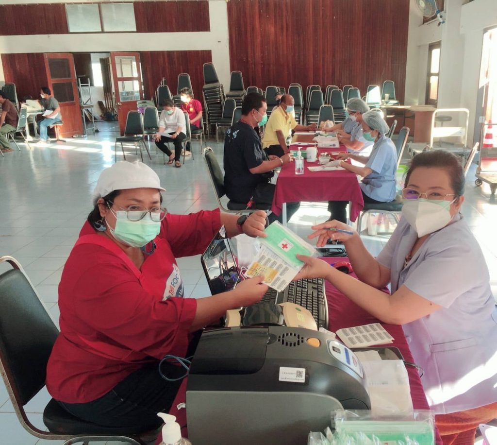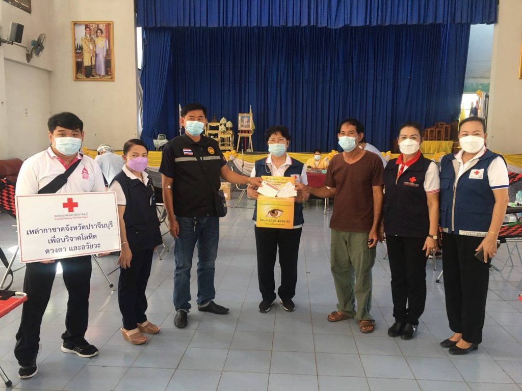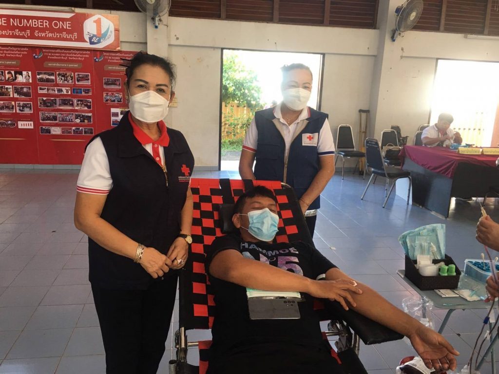 วันที่ 6 มกราคม 2565 นางมัทนา สุวัณณุสส์ นายกเหล่ากาชาดจังหวัดปราจีนบุรี มอบหมายให้คณะกรรมการและสมาชิกเหล่ากาชาดจังหวัดปราจีนบุรี ร่วมกับ โรงพยาบาลเจ้าพระยาอภัยภูเบศร ออกหน่วยรับบริจาคโลหิต ดวงตา อวัยวะ ณ หอประชุมอำเภอเมืองปราจีนบุรี ตำบลหน้าเมือง อำเภอเมืองปราจีนบุรี จังหวัดปราจีนบุรี การออกหน่วยในวันนี้มีผู้มีจิตศรัทธาอันเป็นกุศลร่วมบริจาคโลหิต จำนวนทั้งสิ้น 49 ราย บริจาคโลหิตไม่ได้ 6 ราย ได้โลหิตจำนวน 43 ราย/ยูนิต คิดเป็น 19,350 ซีซี แสดงความจำนง บริจาคดวงตา 2 ราย อวัยวะ 2 ราย อุทิศร่างกาย จำนวน – ราย โดยได้รับความร่วมมือจาก ปลัดอำเภอ เจ้าหน้าที่ เป็นอย่างดียิ่งเหล่ากาชาดจังหวัดปราจีนบุรี ได้มอบหน้ากากอนามัย จำนวน 147 ชิ้น เพื่อเป็นการแสดงความขอบคุณสำหรับผู้มีจิตศรัทธาอันเป็นกุศล ในการร่วมบริจาคโลหิตในครั้งด้วย
