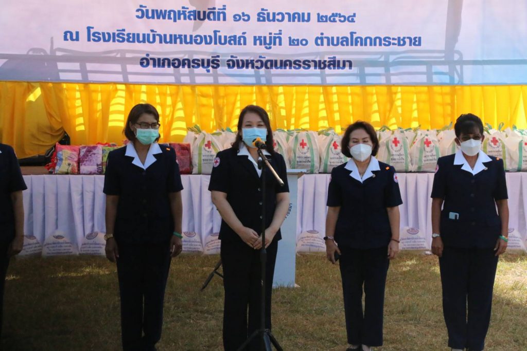 วันที่ 16 ธันวาคม 2564 นางณัฏฐินีภรณ์ จันทรโณทัย นายกเหล่ากาชาดนครราชีมา มอบหมายให้นางสุฐิดา วิริยะกุลนันท์ รองนายกเหล่ากาชาดนครราชีมา พร้อมด้วยกรรมการและสมาชิกเหล่ากาชาดจังหวัดนครราชสีมา ร่วมออกเยี่ยมประชาชน ในโครงการ “เสริมสร้างความจงรักภักดี บำบัดทุกข์ บำรุงสุข สร้างรอยยิ้มให้ประชาชน” (จังหวัดเคลื่อนที่) โดยมี นายชูศักดิ์ ชุนเกาะ รองผู้ว่าราชการจังหวัดนครราชสีมา เป็นประธานในพิธีณ โรงเรียนบ้านหนองโบสถ์พัฒนา ต.โคกกระชาย อ.ครบุรี จ.นครราชสีมา