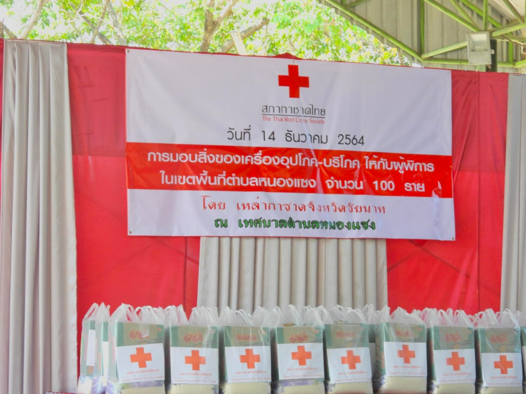 วันที่ 14 ธันวาคม 2564 นาวาเอกหญิงอินทิรา ตันเจริญ นายกเหล่ากาชาดจังหวัดชัยนาท พร้อมด้วยนางนัฐฐา ภูมิฐานนท์ ที่ปรึกษาเหล่ากาชาด คณะกรรมการและสมาชิกเหล่ากาชาด ร่วมมอบถุงยังชีพให้กับผู้พิการ ผู้ยากไร้ ในเขตพื้นที่ตำบลหนองแซง อำเภอหันคา จังหวัดชัยนาท จำนวน 100 ราย ณ เทศบาลตำบลหนองแซง อำเภอหันคา จังหวัดชัยนาท/เหล่ากาชาดจังหวัดชัยนาท