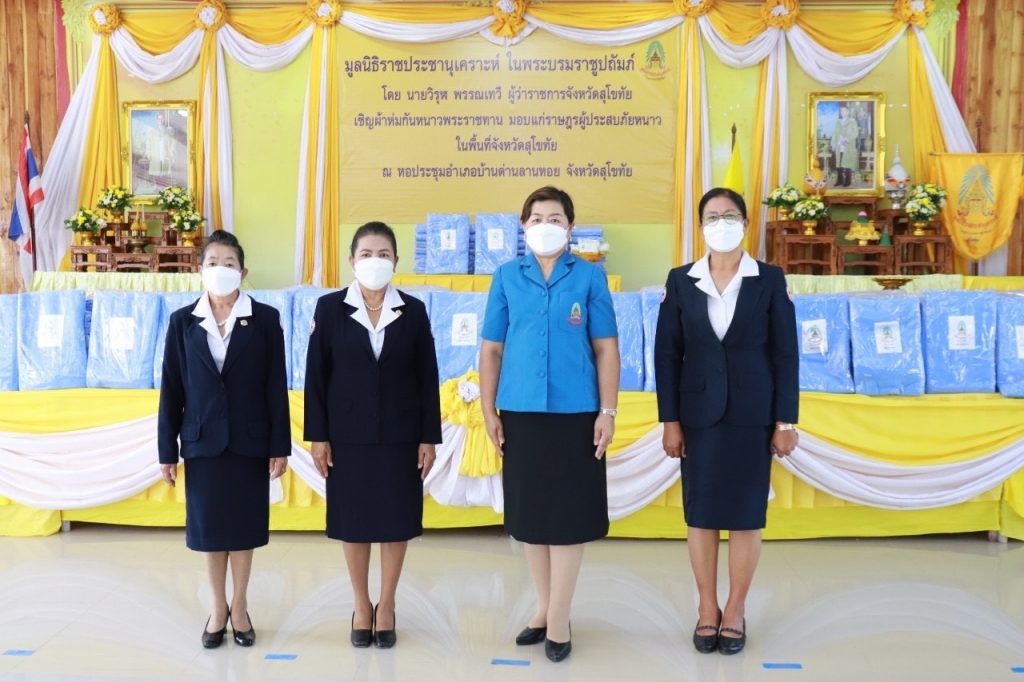 วันที่ 20 ธันวาคม 2564 นางกนกพร พรรณเทวี นายกเหล่ากาชาดจังหวัดสุโขทัย รองผู้ว่าราชการจังหวัดสุโขทัย ปลัดจังหวัดสุโขทัย นายอำเภอทุกอำเภอ กรรมการกาชาดอำเภอบ้านด่านลานหอย หัวหน้าส่วนราชการ และข้าราชการ ร่วมพิธีมอบผ้าห่มกันหนาวพระราชทาน ของมูลนิธิราชประชานุเคราะห์ ในพระบรมราชูปถัมภ์ ให้แก่ราษฎรผู้ประสบภัยหนาวในพื้นที่ทั้ง 9 อำเภอ จำนวน 2,500 ผืน ให้แก่นายอำเภอ และผู้แทน ทั้ง 9 อำเภอของจังหวัดสุโขทัย เพื่อนำไปมอบให้แก่ราษฎรที่อาศัยอยู่ในถิ่นทุรกันดาร ผู้สูงอายุ คนพิการทุพพลภาพ และผู้ที่มีรายได้น้อยที่ได้รับผลกระทบจากภัยหนาวในพื้นที่จังหวัดสุโขทัย โดยมี นายวิรุฬ พรรณเทวี ผู้ว่าราชการจังหวัดสุโขทัย เป็นประธานในพิธี