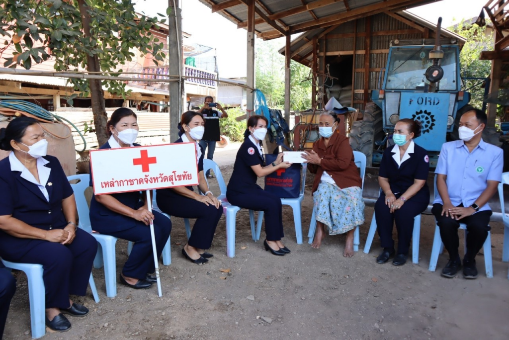 วันที่ 20 ธันวาคม 2564 นางพร้อมจันทร์ ทีคะสุข รองนายกเหล่ากาชาดจังหวัดสุโขทัย พร้อมด้วยกรรมการกาชาดอำเภอคีรีมาศ เจ้าหน้าที่พัฒนาสังคมและมั่นคงของมนุษย์จังหวัดสุโขทัย สาธารณสุขอำเภอคีรีมาศและเจ้าหน้าที่เหล่ากาชาดจังหวัดสุโขทัย เยี่ยมผู้ป่วยและผู้ด้อยโอกาส จำนวน 2 ราย ในพื้นที่อำเภอคีรีมาศ ได้แก่