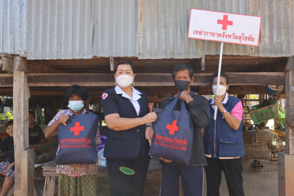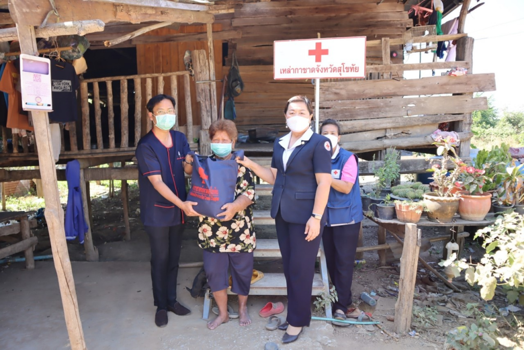 วันที่ 21 ธันวาคม 2564 นางกนกพร พรรณเทวี นายกเหล่ากาชาดจังหวัดสุโขทัย พร้อมด้วยเจ้าหน้าที่พัฒนาสังคมและความมั่นคงของมนุษย์จังหวัดสุโขทัย เจ้าหน้าที่สาธารณสุขอำเภอบ้านด่านลานหอยและเจ้าหน้าที่เหล่ากาชาดจังหวัดสุโขทัย เยี่ยมผู้ป่วยโรคเรื้อน มูลนิธิราชประชาสมาสัย ในพระบาทสมเด็จพระบรมชนกาธิเบศรมหาภูมิพลอดุลยเดชมหาราช บรมนาถบพิตร จำนวน 4 ราย ในพื้นที่ตำบลวังน้ำขาวและตำบลลานหอย เหล่ากาชาดจังหวัดสุโขทัยได้มอบถุงธารน้ำใจ ให้การช่วยเหลือเบื้องต้น