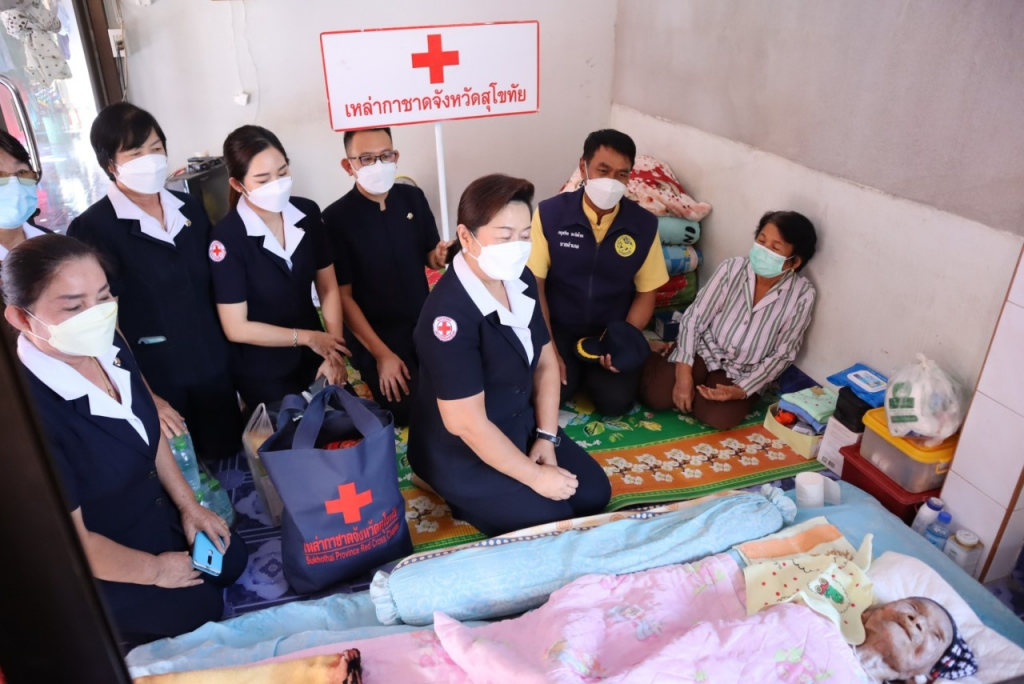 วันที่ 22 ธันวาคม 2564 นางกนกพร พรรณเทวี นายกเหล่ากาชาดจังหวัดสุโขทัย พร้อมด้วยนายอำเภอทุ่งเสลี่ยม/นายกกิ่งกาชาดอำเภอทุ่งเสลี่ยม กรรมการกิ่งกาชาดอำเภอทุ่งเสลี่ยม เจ้าหน้าที่พัฒนาสังคมและความมั่นคงของมนุษย์จังหวัดสุโขทัย เจ้าหน้าที่สาธารณสุขอำเภอทุ่งเสลี่ยมและเจ้าหน้าที่เหล่ากาชาดจังหวัดสุโขทัย เยี่ยมผู้สูงอายุ 100 ปีขึ้นไป จำนวน 1 ราย ได้แก่ นางคำ สิรินวน อายุ 105 ปี บ้านเลขที่ 17 หมู่ที่ 5 ตำบลกลางดง อำเภอทุ่งเสลี่ยม เหล่ากาชาดจังหวัดสุโขทัยได้มอบเงิน 1,000 บาท และถุงธารน้ำใจ