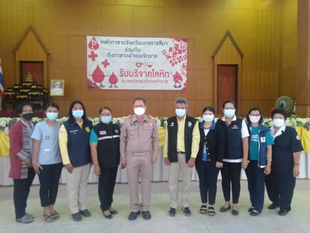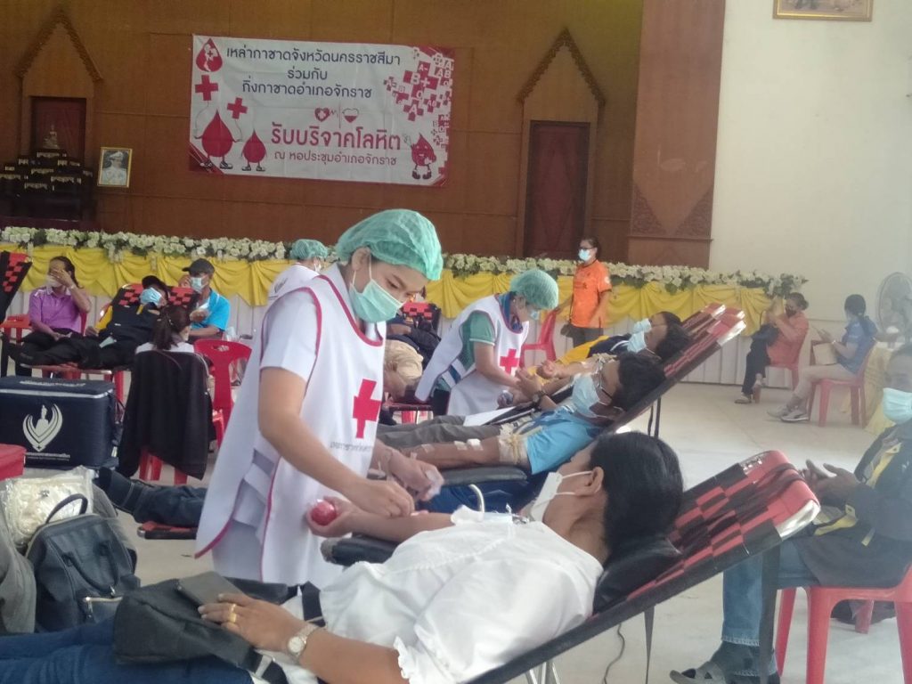 วันที่ 29 ธันวาคม 2564 นางณัฏฐินีภรณ์ จันทรโณทัย นายกเหล่ากาชาดจังหวัดนครราชสีมา มอบหมายให้เจ้าหน้าที่ สาขาบริการโลหิตแห่งชาติ เหล่ากาชาดจังหวัดนครราชสีมา ร่วมกับโรงพยาบาลมหาราชนครราชสีมา ออกรับบริจาคโลหิต เพื่อเป็นการจัดหาโลหิตสำหรับใช้ในการรักษาผู้ป่วย ของโรงพยาบาลในจังหวัดนครราชสีมา ออกหน่วยรับบริจาคโลหิต ณ อำเภอจักราชมีผู้ประสงค์บริจาคโลหิตทั้งสิ้น 114 ราย จำนวนโลหิตที่ไดัรับบริจาค 91 ยูนิต