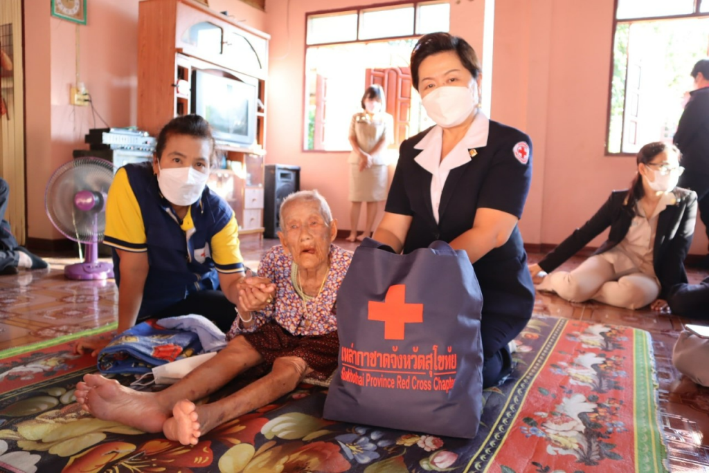 วันที่ 27 ธันวาคม 2564 นายกเหล่ากาชาดจังหวัดสุโขทัย พร้อมด้วยนายอำเภอกงไกรลาศ ปลัดอำเภอ เจ้าหน้าที่พัฒนาสังคมและมั่นคงของมนุษย์จังหวัดสุโขทัย เจ้าหน้าที่สาธารณสุขอำเภอกงไกรลาศและเจ้าหน้าที่เหล่ากาชาดจังหวัดสุโขทัย เยี่ยมผู้สูงอายุ 100 ปีขึ้นไป จำนวน 4 ราย ในพื้นที่อำเภอกงไกรลาศ ได้แก่