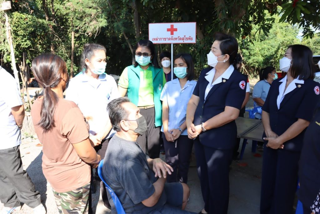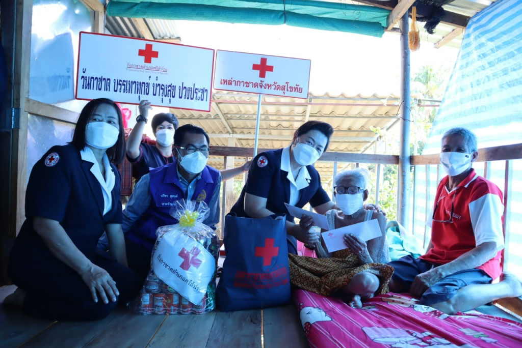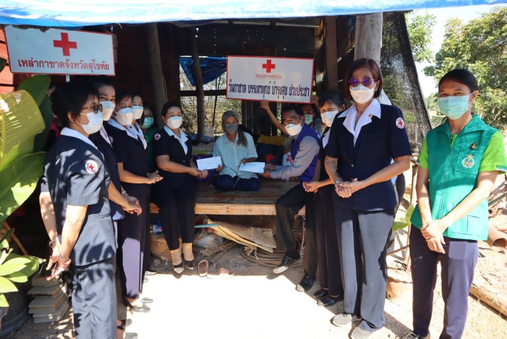 วันที่ 28 ธันวาคม 2564 นายกเหล่ากาชาดจังหวัดสุโขทัย พร้อมด้วยนายอำเภอศรีสำโรง นายกกิ่งกาชาดอำเภอศรีสำโรง กรรมการสมาชิกกิ่งกาชาดอำเภอศรีสำโรง เจ้าหน้าที่พัฒนาสังคมและความมั่นคงของมนุษย์จังหวัดสุโขทัย เจ้าหน้าที่สาธารณสุขอำเภอศรีสำโรงและเจ้าหน้าที่เหล่ากาชาดจังหวัดสุโขทัย เยี่ยมผู้ป่วยในพระบรมราชานุเคราะห์ จำนวน 3 ราย คือ นายเอื้อม หนูสู ตำบลนาขุนไกรนายพิชิดชัย พิลาสุข ตำบลนาขุนไกร ผู้ป่วยในมูลนิธิแพทย์อาสาสมเด็จพระศรีนครินทราบรมราชชนนี (พอ.สว.)และนายนเรศ เพชรคง ตำบลวังลึก ผู้ป่วยในพระเจ้าวรวงศ์เธอ พระองค์เจ้าโสมสวลี กรมหมื่นสุทธนารีนาถ โดยเหล่ากาชาดจังหวัดสุโขทัย ได้มอบเงินช่วยเหลือรายละ 1,000 บาท และถุงธารน้ำใจ