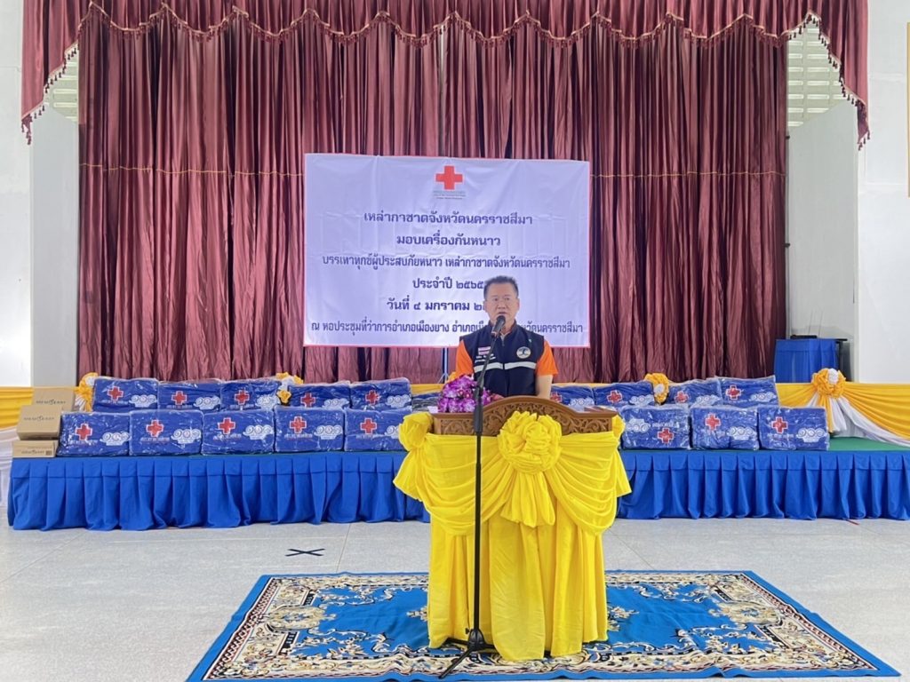 วันที่ 4 มกราคม 2565 นายวิเชียร จันทรโณทัย ผู้ว่าราชการจังหวัดนครราชสีมา พร้อมด้วยนางณัฏฐินีภรณ์ จันทรโณทัย นายกเหล่ากาชาดจังหวัดนครราชสีมา ประธานพิธีมอบผ้าห่มกันหนาวและเสื้อกันหนาวตามแผนบรรเทาทุกข์ผู้ประสบภัยหนาว ร่วมกับ เหล่ากาชาดจังหวัดนครราชสีมาและกาชาดที่ 4 จังหวัดนครราชสีมาสภากาชาดไทย มอบให้กับประชาชนผู้ประสบภัยหนาวจำนวน 100 ผืน พร้อมเสื้อกันหนาว 200 ตัวให้กับราษฎรในพื้นที่อำเภอเมือง ณ หอประชุมที่ว่าการอำเภอเมืองยาง อำเภอเมืองยาง จังหวัดนครราชสีมา