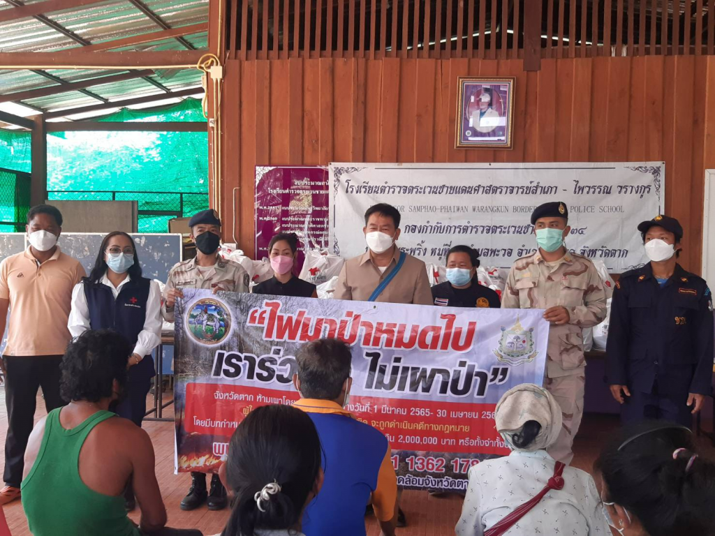 วันที่ 31 มกราคม 2565 นายสมชาย ไตรทิพย์ชาติสกุล นายอำเภอแม่สอด นายกกิ่งกาชาดอำเภอแม่สอด พร้อมด้วยสมาชิกกิ่งกาชาดอำเภอแม่สอด ผู้ใหญ่บ้าน ผู้ช่วยผู้ใหญ่บ้านร่วมกิจกรรมรณรงค์ป้องกันไฟป่า “ไฟมาป่าหมดไป เราร่วมใจ ไม่เผาป่า” พร้อมมอบถุงยังชีพ ผ้าขนหนู ผ้าห่มและเสื้อกันหนาว จำนวน 50 ชุด แก่ประชนชนผู้ประสบภัยหนาว ณ โรงเรียนตำรวจตระเวนชายแดนศาสตราจารย์สำเภา-ไพวรรณ วรางกูร กองกำกับการตำรวจตระเวนชายแดนที่ 34 บ้านห้วยระพริ้ง หมู่ที่ 8 ตำบลพะวอ อำเภอแม่สอด จังหวัดตาก