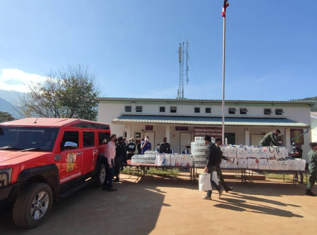วันที่ 2 ธันวาคม 2564 นางนงค์นิตย์ เนียมศิริ นายกเหล่ากาชาดจังหวัดเลย มอบหมายกรรมการเหล่ากาชาดจังหวัดเลย , สมาชิกเหล่ากาชาดจังหวัดเลย(อำเภอด่านซ้าย) ปลัดอำเภอฝ่ายความมั่นคง(ผู้แทนนายอำเภอด่านซ้าย) สาธารณสุขอำเภอด่านซ้าย สนง.ปภ.จังหวัดเลย สาขาด่านซ้าย กองร้อยตำรวจตระเวนชายแดนที่ 247 หน่วยปฏิบัติการหมวดเคลื่อนที่เร็ว (ร.8 พัน 1) โรงเรียน ตชด.บ้านหมันขาว อบต.กกสะทอน รพ.สต.บ้านตูบค้อ ผู้นำท้องที่ และอสม. ออกตรวจเยี่ยม และมอบถุงยังชีพ มิตรปันสุข จำนวน 200 ชุด ได้รับการสนับสนุนจากกลุ่มมิตรผลและบริษัท บ้านปู จำกัด (มหาชน) และน้ำดื่ม จำนวน 200 แพ็ค ที่ได้รับการสนับสนุน จากคุณสุนีย์ เหลืองวงศ์ไพศาล กรรมการเหล่ากาชาดจังหวัดเลย ให้กับราษฎรที่สัมผัสเสี่ยงสูงในการติดเชื้อไวรัสโคโรนา 2019 (โควิด-19) และต้องกักตัว บ้านหมันขาว หมู่ที่ 11 บ้านตูบค้อ หมู่ที่ 6 และหมู่ที่ 12 ตำบลกกสะทอน ณ โรงเรียน ตชด.บ้านหมันขาว ต.กกสะทอน อ.ด่านซ้าย จ.เลย