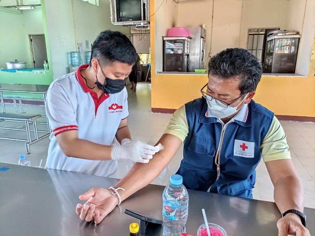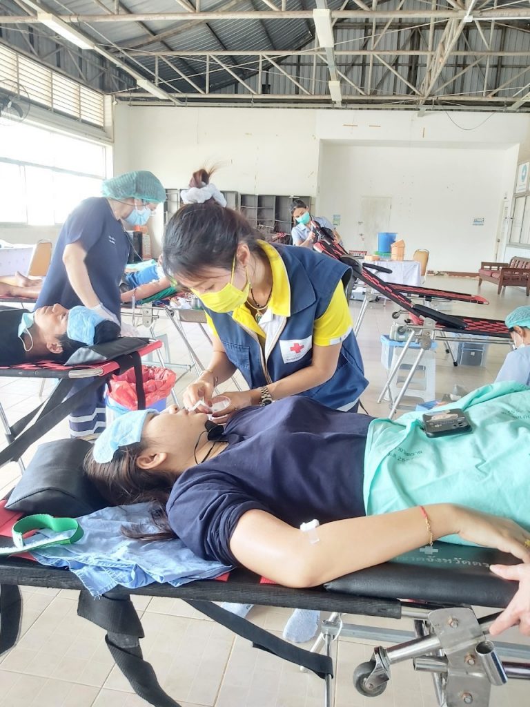 วันที่ 9 ธันวาคม 2564นางชุลีพร เตรัตน์ นายกเหล่ากาชาดจังหวัดตราด มอบหมายให้คณะกรรมการและสมาชิกเหล่ากาชาดจังหวัดตราด ออกปฏิบัติงานรับบริจาคโลหิต ร่วมกับโรงพยาบาลตราด และสำนักงานสาธารณสุขอำเภอเขาสมิง ณ โรงอาหารฟาร์มเลี้ยงกุ้งระบบปิด ร้อยเพชร บมจ. เครือเจริญโภคภัณฑ์อาหาร อำเภอเขาสมิง จังหวัดตราด โดยมีพนักงานของ CPF ร้อยเพชร ร่วมแสดงความจำนงบริจาคโลหิต จำนวน 30 ราย ผ่านการคัดกรอง จำนวน 25 ราย ได้โลหิต จำนวน 11,250 ซีซี ทั้งนี้ เจ้าหน้าที่ผู้ปฏิบัติงานทุกคนต้องผ่านการตรวจหาเชื้อโควิด – 19 ด้วย ATK 100% ตามมาตรการของสาธารณสุข
