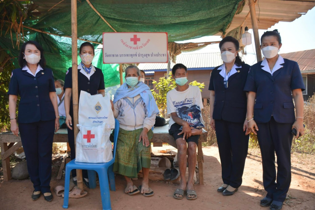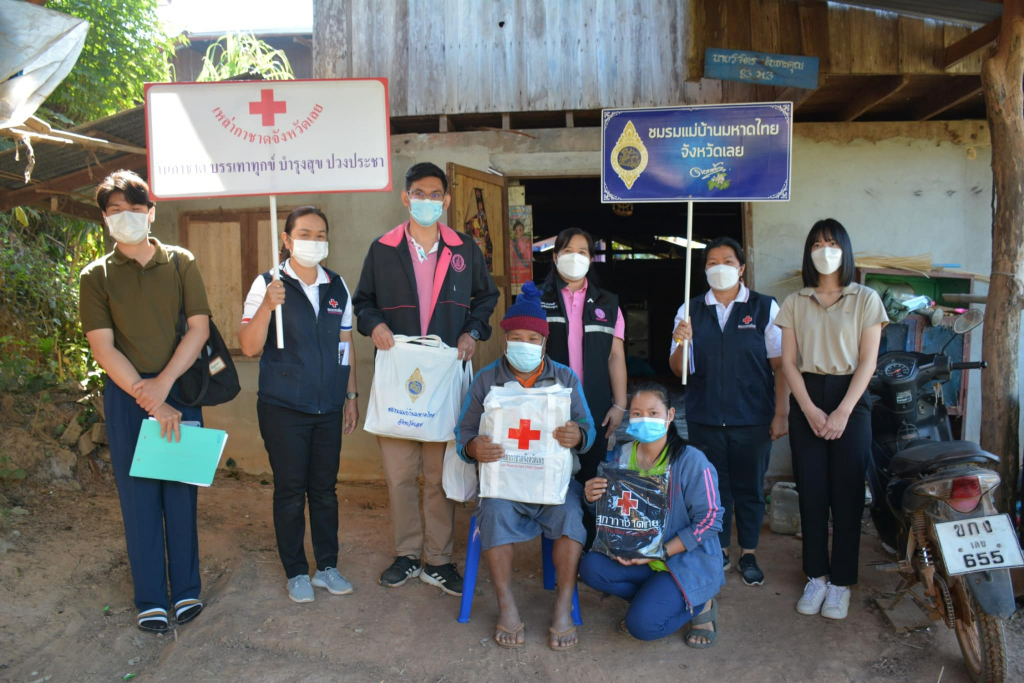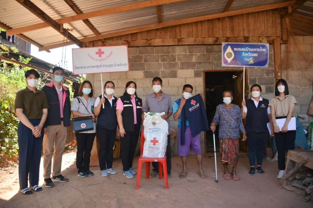 ในการนี้ เหล่ากาชาดจังหวัดเลย มอบถุงเครื่องอุปโภคบริโภค จำนวน 6 ชุด และเสื้อกันหนาว จำนวน 6 ตัว ให้กับแก่กลุ่มเปราะบางทั้ง 6 รายดังกล่าว